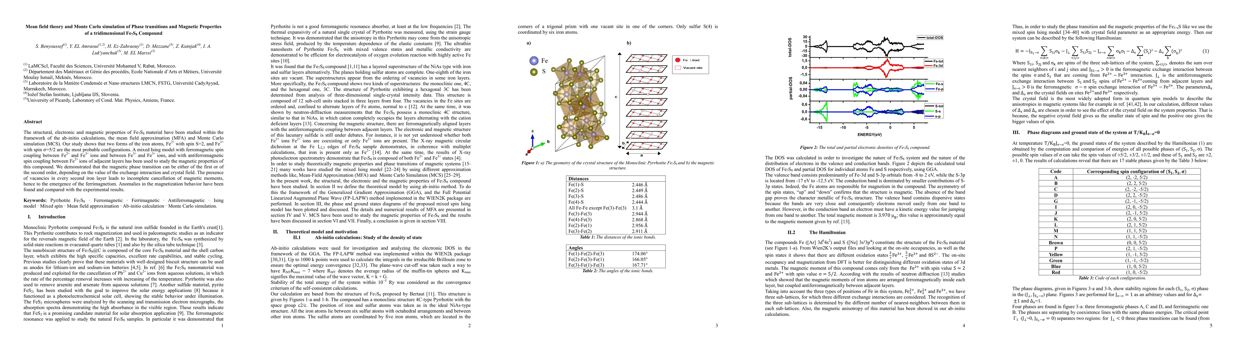 The structural, electronic and magnetic properties of Fe7S8 material have been studied within the framework of the ab-initio calculations, the mean field approximation (MFA) and Monte Carlo simulation (MCS). Our study shows that two forms of the iron atoms, Fe2+ with spin S=2, and Fe3+ with spin {\sigma}=5/2 are the most probable configurations. A mixed Ising model with ferromagnetic spin coupling between Fe2+ and Fe3+ ions and between Fe3+ and Fe3+ ions, and with antiferromagnetic spin coupling between Fe2+ ions of adjacent layers has been used to study the magnetic properties of this compound. We demonstrated that the magnetic phase transition can be either of the first or of the second order, depending on the value of the exchange interaction and crystal field. The presence of vacancies in every second iron layer leads to incomplete cancellation of magnetic moments, hence to the emergence of the ferrimagnetism. Anomalies in the magnetization behavior have been found and compared with the experimental results.