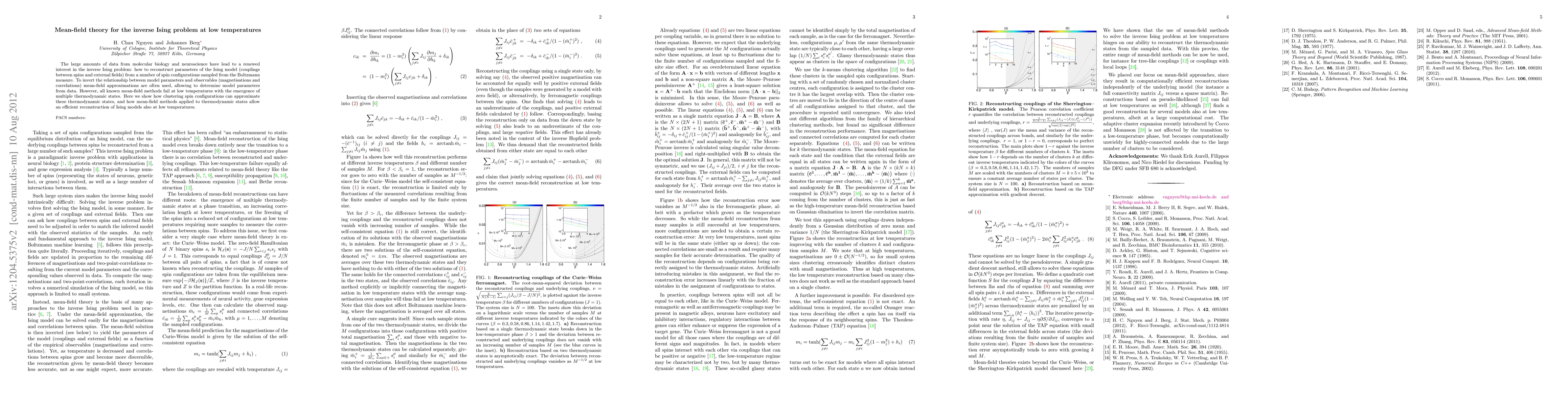 This paper proposes a method to reconstruct parameters of the Ising model at low temperatures by clustering spin configurations to approximate multiple thermodynamic states, enabling effective mean-field approximations even when traditional methods fail.