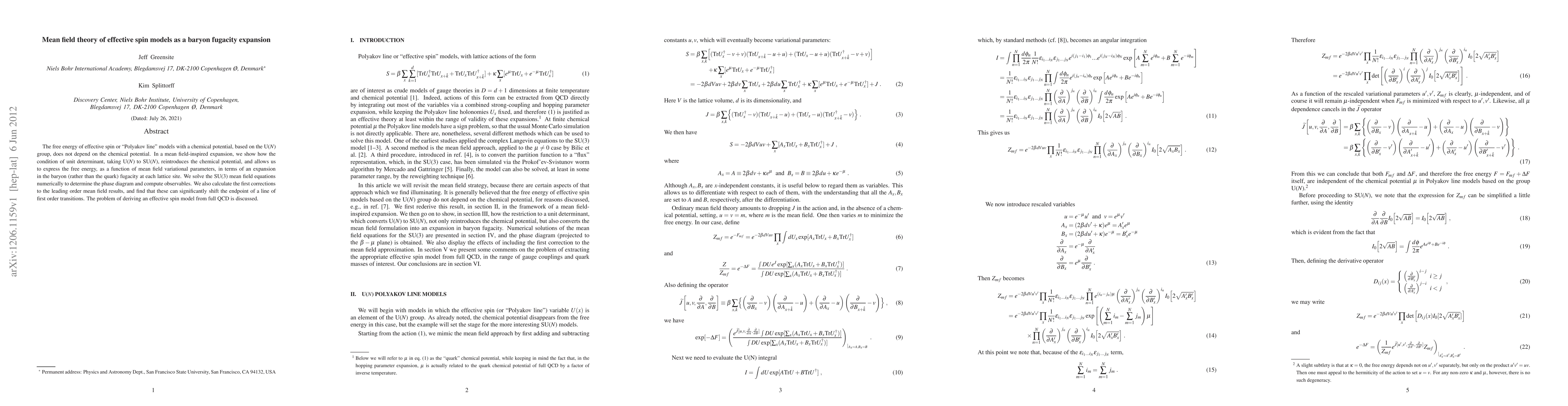 This paper explores the mean field theory of effective spin models, demonstrating how the unit determinant condition reintroduces chemical potential and allows the free energy to be expressed in terms of baryon fugacity. Numerical solutions of SU(3) mean field equations reveal phase diagrams and significant first-order transition endpoint shifts due to first-order corrections.