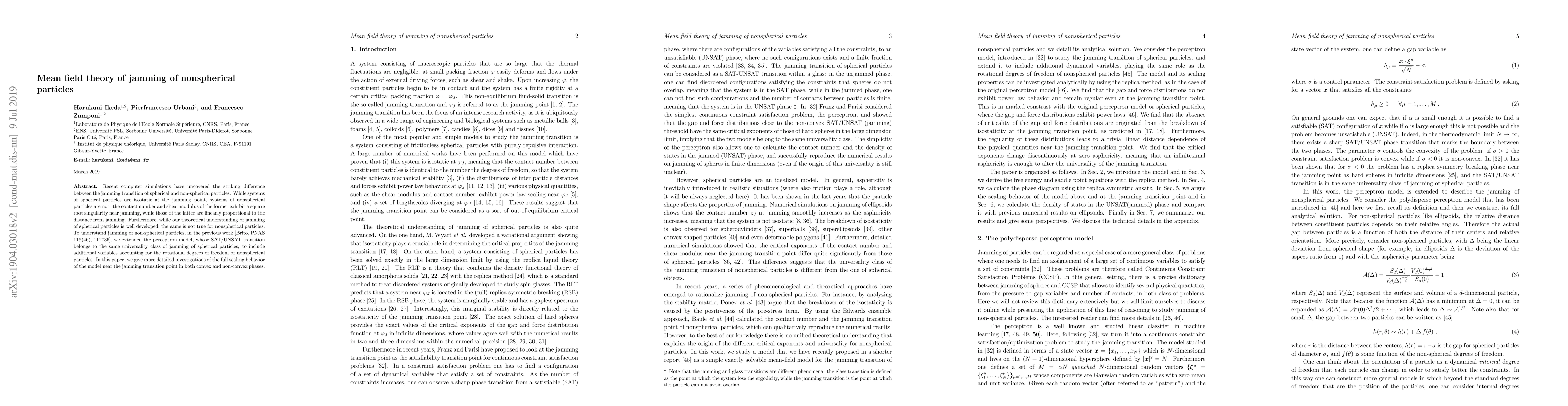 This paper investigates the jamming behavior of nonspherical particles using mean field theory, revealing significant differences from spherical particles. It extends the perceptron model to account for rotational degrees of freedom, providing insights into the scaling behavior near the jamming transition in both convex and non-convex phases.