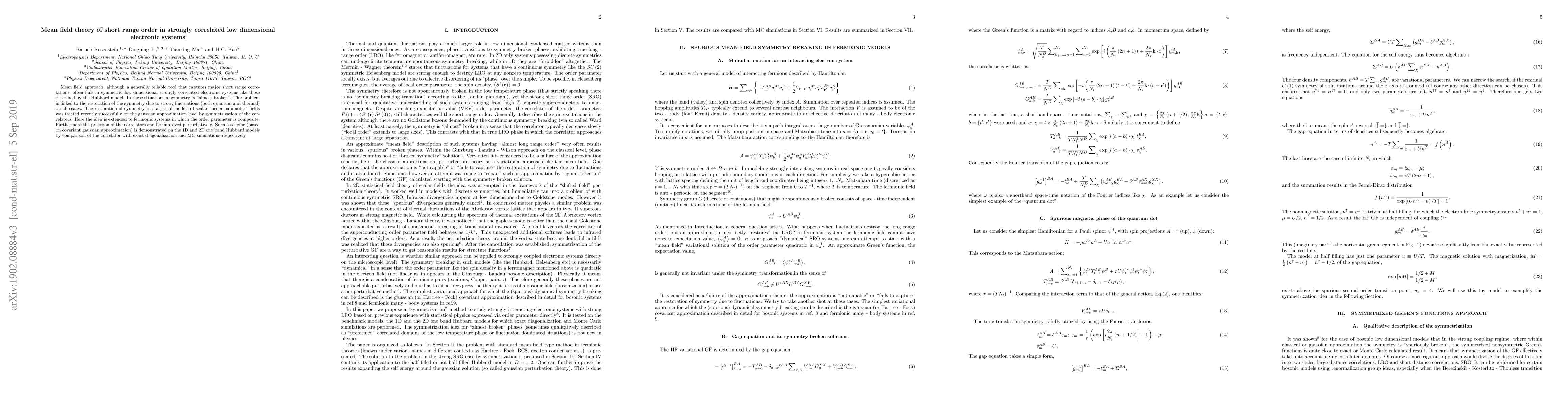 Mean field approach, although a generally reliable tool that captures major short range correlations, often fails in symmetric low dimensional strongly correlated electronic systems like those described by the Hubbard model. In these situations a symmetry is \almost broken". The problem is linked to the restoration of the symmetry due to strong uctuations (both quantum and thermal) on all scales. The restoration of symmetry in statistical models of scalar \order parameter" fields was treated recently successfully on the gaussian approximation level by symmetrization of the correlators. Here the idea is extended to fermionic systems in which the order parameter is composite. Furthermore the precision of the correlators can be improved perturbatively. Such a scheme (based on covariant gaussian approximation) is demonstrated on the 1D and 2D one band Hubbard models by comparison of the correlator with exact diagonalization and MC simulations respectively.
