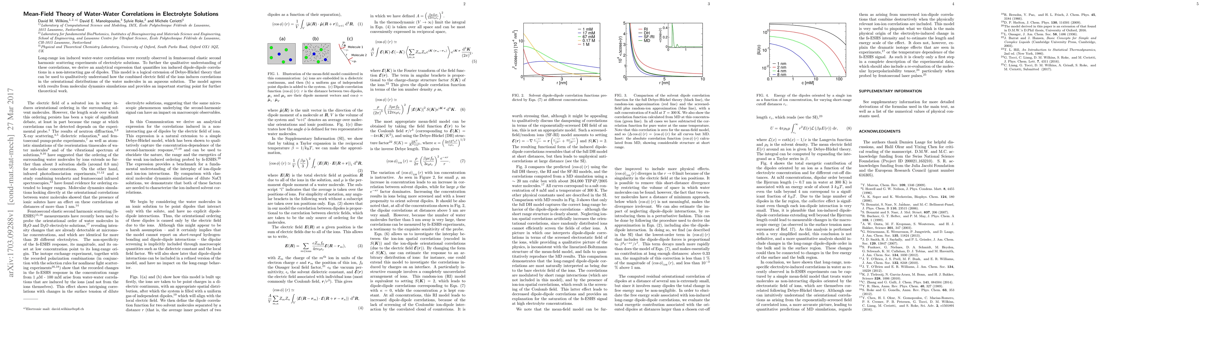 This paper develops a mean-field theory to quantify ion-induced water-water correlations in electrolyte solutions, extending Debye-Hückel theory and aligning with molecular dynamics simulation results. The derived analytical expression provides a qualitative understanding of how ions affect the orientational distributions of water molecules.