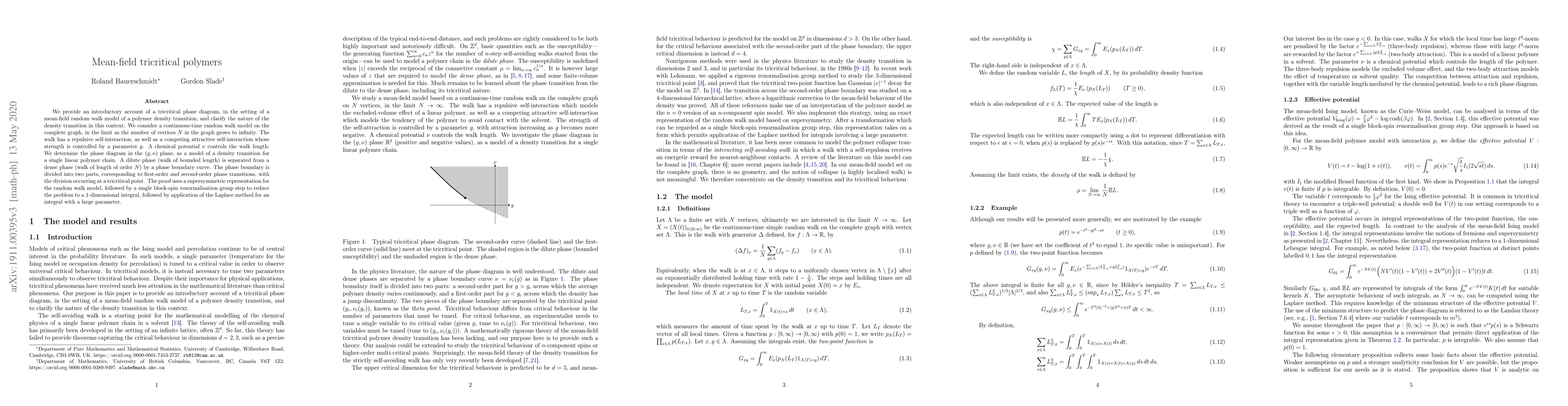 We provide an introductory account of a tricritical phase diagram, in the setting of a mean-field random walk model of a polymer density transition, and clarify the nature of the density transition in this context. We consider a continuous-time random walk model on the complete graph, in the limit as the number of vertices $N$ in the graph grows to infinity. The walk has a repulsive self-interaction, as well as a competing attractive self-interaction whose strength is controlled by a parameter $g$. A chemical potential $\nu$ controls the walk length. We determine the phase diagram in the $(g,\nu)$ plane, as a model of a density transition for a single linear polymer chain. A dilute phase (walk of bounded length) is separated from a dense phase (walk of length of order $N$) by a phase boundary curve. The phase boundary is divided into two parts, corresponding to first-order and second-order phase transitions, with the division occurring at a tricritical point. The proof uses a supersymmetric representation for the random walk model, followed by a single block-spin renormalisation group step to reduce the problem to a 1-dimensional integral, followed by application of the Laplace method for an integral with a large parameter.
