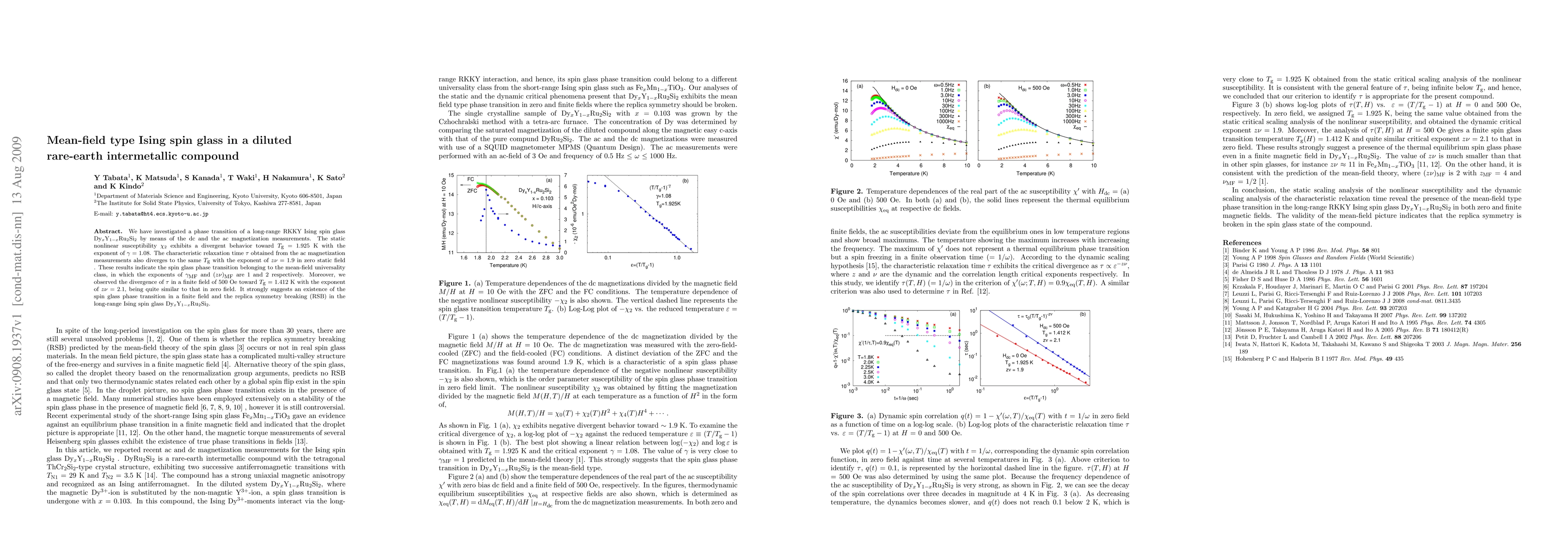 Researchers studied a rare-earth intermetallic compound's spin glass phase transition, finding it belongs to the mean-field universality class with specific exponents, suggesting replica symmetry breaking and spin glass behavior in finite fields.