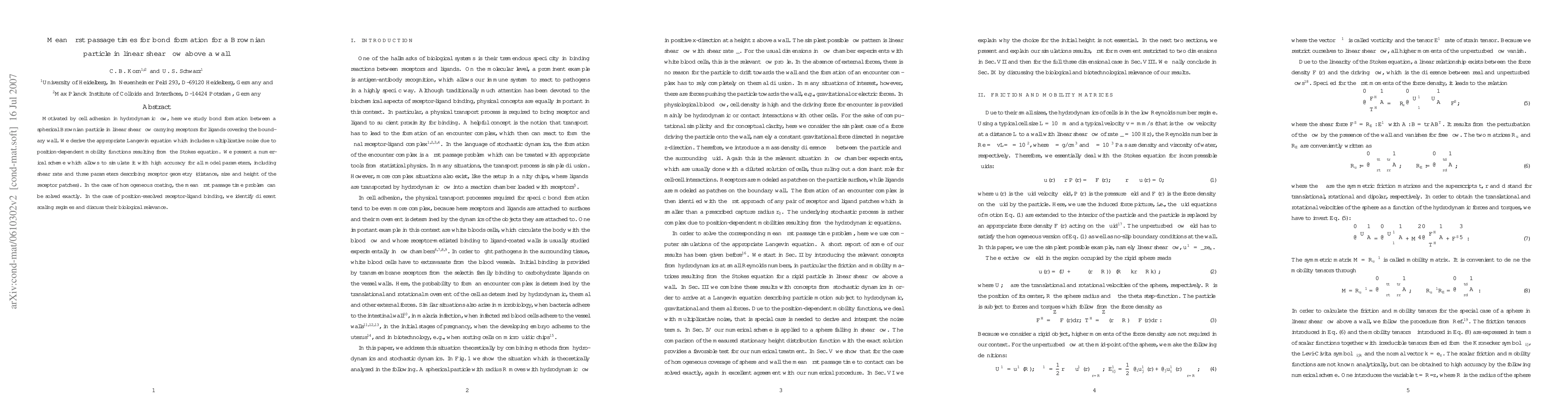 This paper investigates bond formation dynamics between a Brownian particle and a wall under linear shear flow, using a derived Langevin equation that accounts for multiplicative noise. The study provides a numerical scheme to simulate the system and analyzes mean first passage times, identifying scaling regimes relevant to cell adhesion processes.