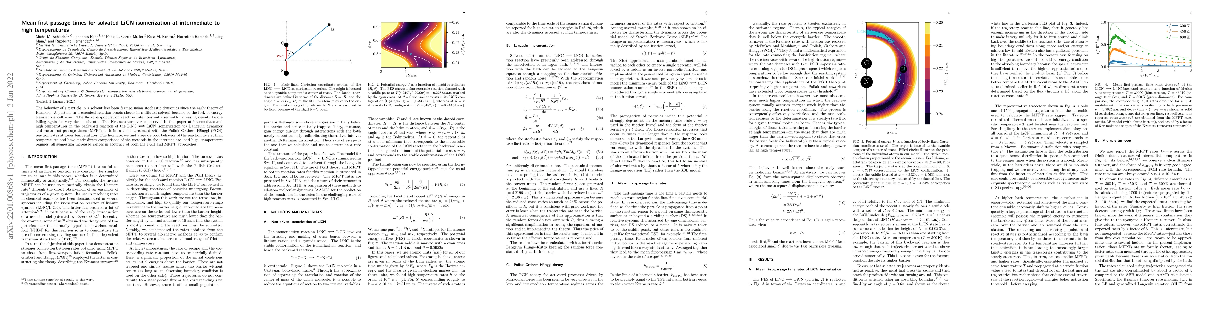 The behavior of a particle in a solvent has been framed using stochastic dynamics since the early theory of Kramers. A particle in a chemical reaction reacts slower in a diluted solvent because of the lack of energy transfer via collisions. The flux-over-population reaction rate constant rises with increasing density before falling again for very dense solvents. This Kramers turnover is observed in this paper at intermediate and high temperatures in the backward reaction of the LiNC $\rightleftharpoons$ LiCN isomerization via Langevin dynamics and mean first-passage times (MFPTs). It is in good agreement with the Pollak-Grabert-H\"anggi (PGH) reaction rates at lower temperatures. Furthermore, we find a square root behavior of the reaction rate at high temperatures and have made direct comparisons of the methods in the intermediate- and high- temperature regimes; all suggesting increased ranges in accuracy of both the PGH and MFPT approaches.