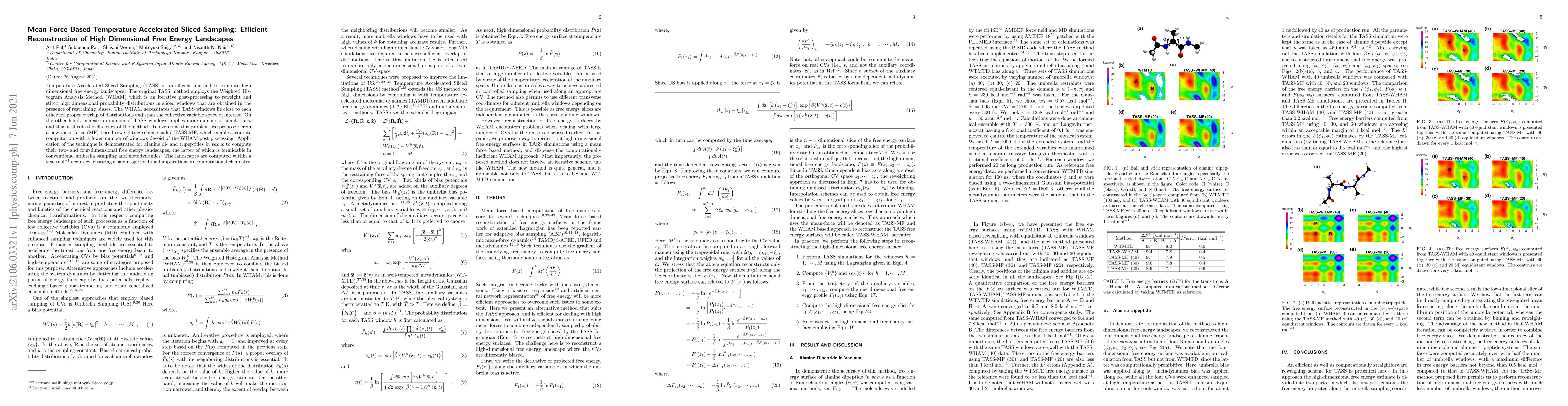 This paper proposes a new mean-force based reweighting scheme called TASS-MF to efficiently compute high-dimensional free energy landscapes with fewer simulations, eliminating the need for WHAM post-processing. The method is demonstrated on alanine di- and tripeptides, achieving accurate free energy landscapes within a kcal/mol accuracy.