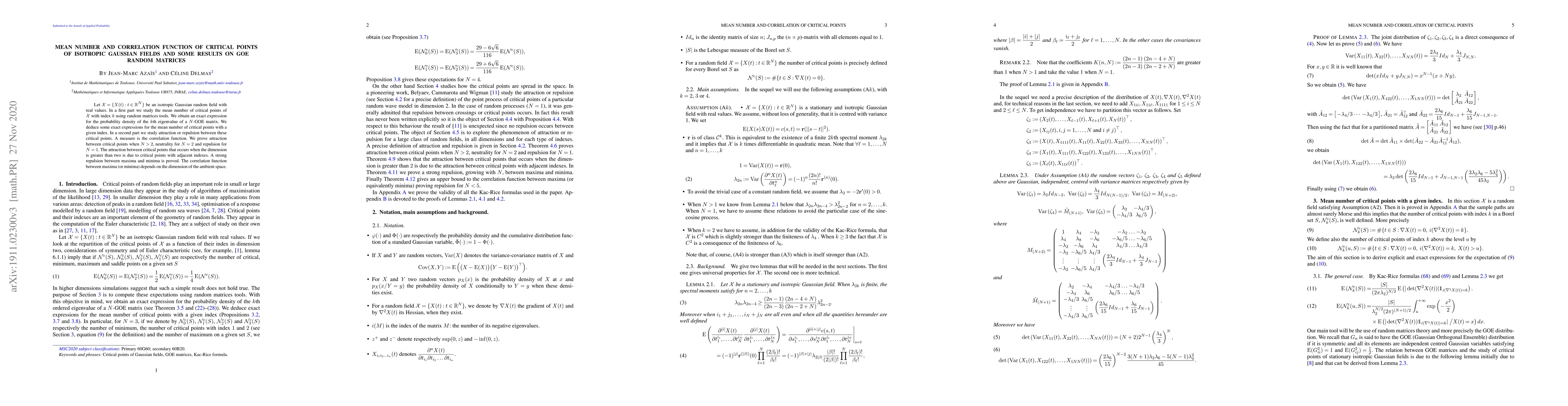 This paper investigates the mean number and correlation function of critical points in isotropic Gaussian fields, employing tools from random matrix theory. It finds exact expressions for the mean number of critical points and proves attraction between critical points for dimensions greater than two, neutrality for dimension two, and repulsion for dimension one.