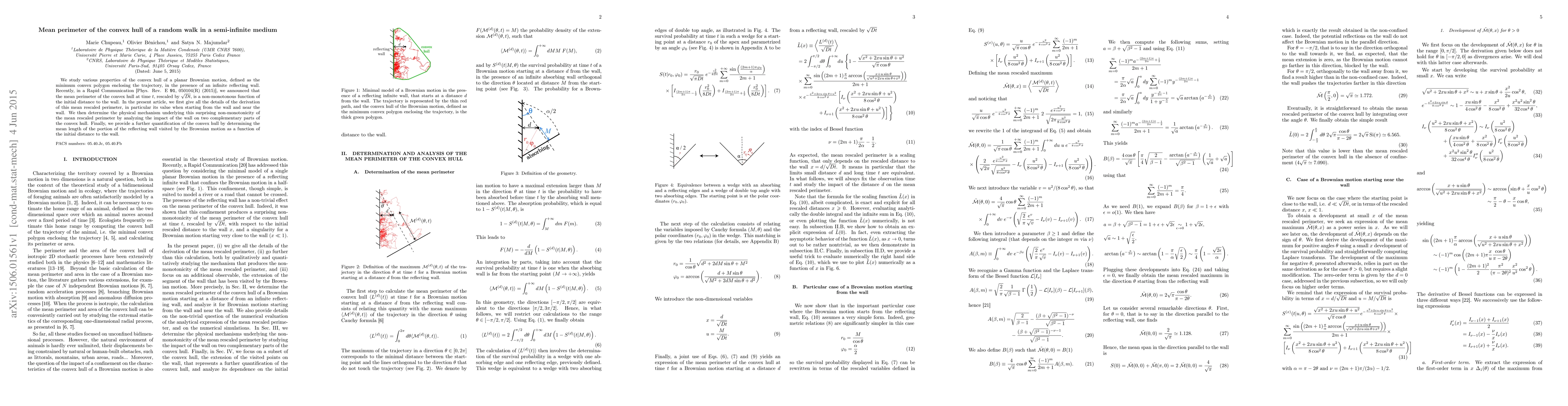 This paper details the derivation and analysis of the mean perimeter of the convex hull formed by a planar Brownian motion near an infinite reflecting wall, revealing a non-monotonic behavior influenced by the initial distance to the wall. It also investigates the physical mechanisms behind this phenomenon and quantifies the wall's interaction with the Brownian motion.