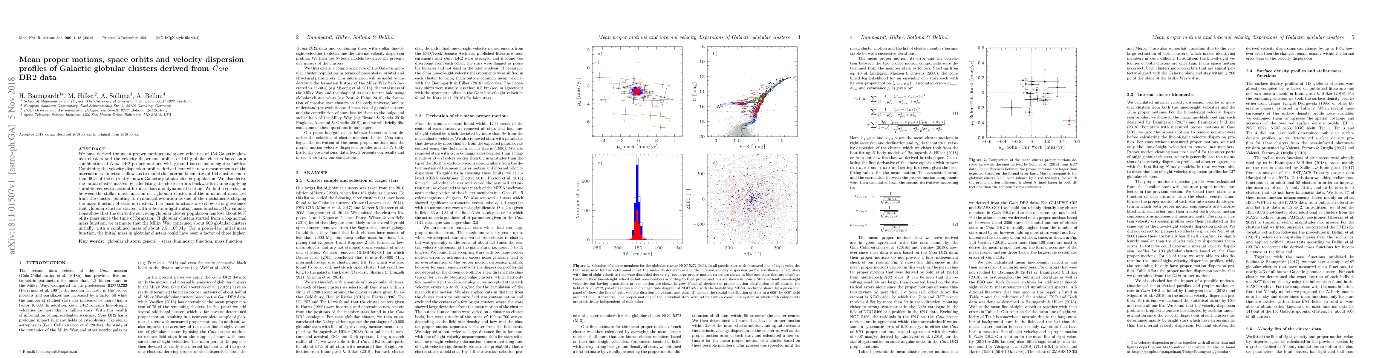 This paper uses Gaia DR2 data to derive mean proper motions, space velocities, and velocity dispersion profiles for 154 Galactic globular clusters, modeling their internal kinematics and estimating initial cluster masses. The study finds significant mass loss and suggests that globular clusters likely started with a bottom-light initial mass function.