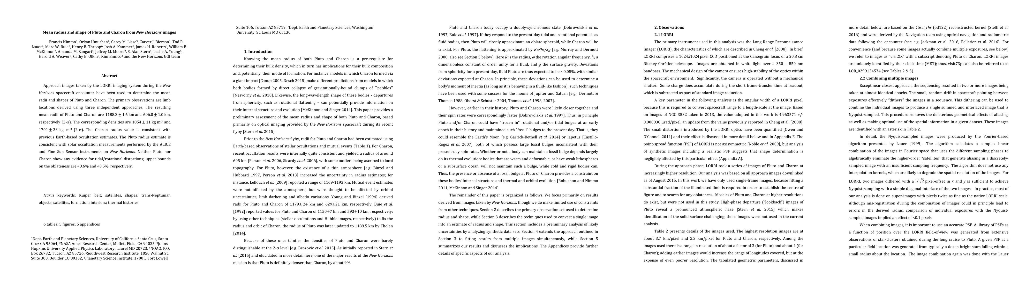 This research paper reports mean radii and shapes of Pluto and Charon derived from New Horizons spacecraft images, yielding radii of 1188.3 +/- 1.6 km for Pluto and 606.0 +/- 1.0 km for Charon, with no significant tidal or rotational distortions observed.