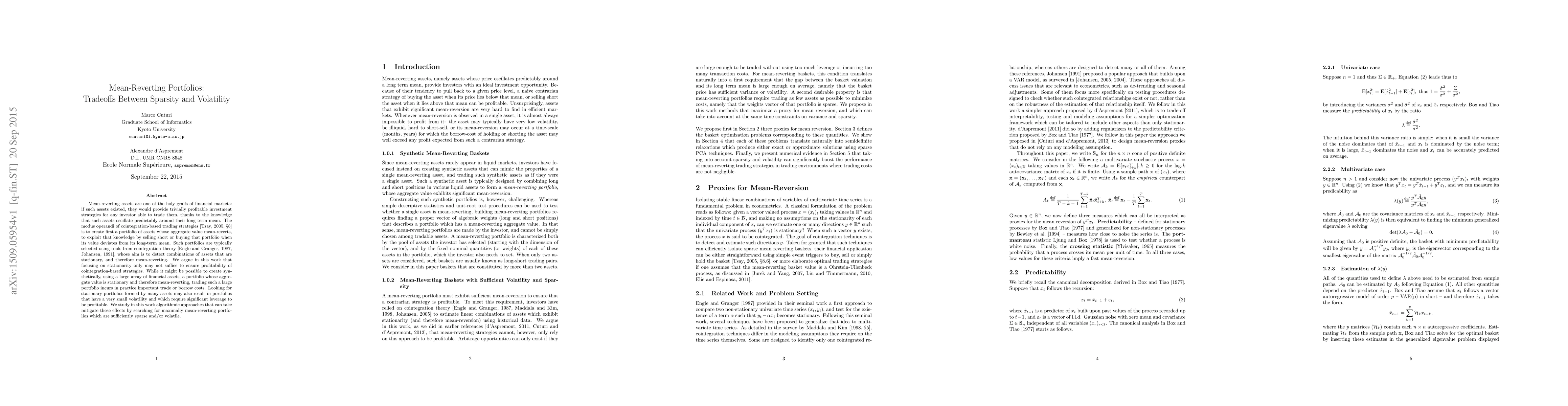 This paper explores the tradeoffs between sparsity and volatility in mean-reverting portfolios, arguing that purely stationarity-focused strategies may not be profitable due to high trading costs and leverage requirements. It proposes algorithmic methods to find portfolios that balance mean-reversion with sparsity and volatility for better profitability.