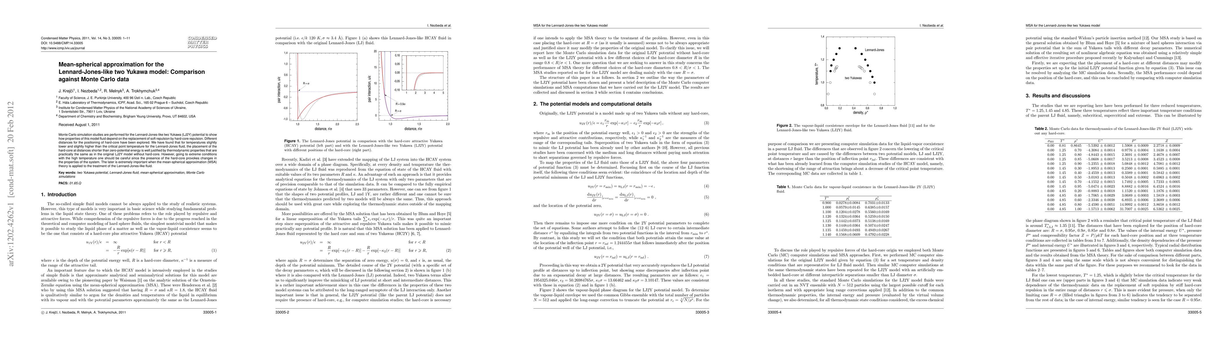 This paper compares Monte Carlo simulations of the Lennard-Jones-like two Yukawa model with and without hard-core repulsion, finding that hard core placement affects the model's thermodynamic properties, especially at high temperatures. The mean spherical approximation theory must account for these changes when applied.