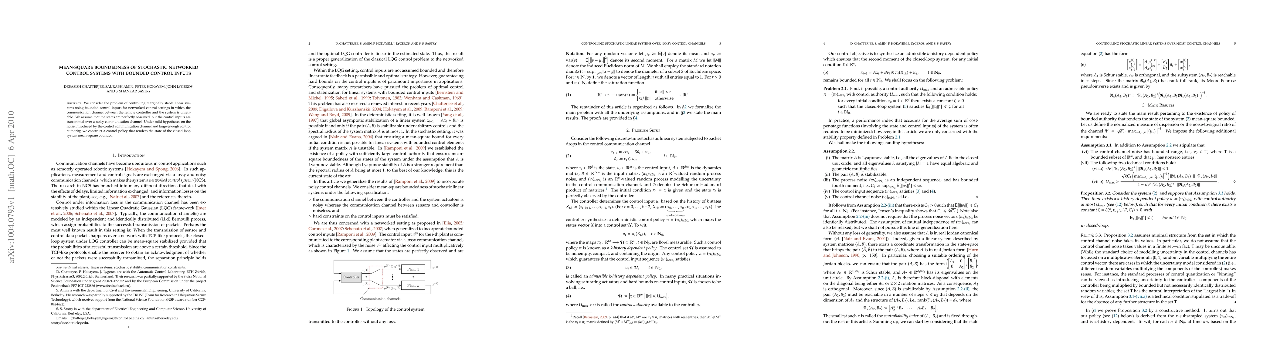 This paper addresses the control of marginally stable linear systems in networked settings with unreliable communication channels. It proposes a control policy that ensures mean-square boundedness of the system's state under bounded control inputs and mild noise assumptions.