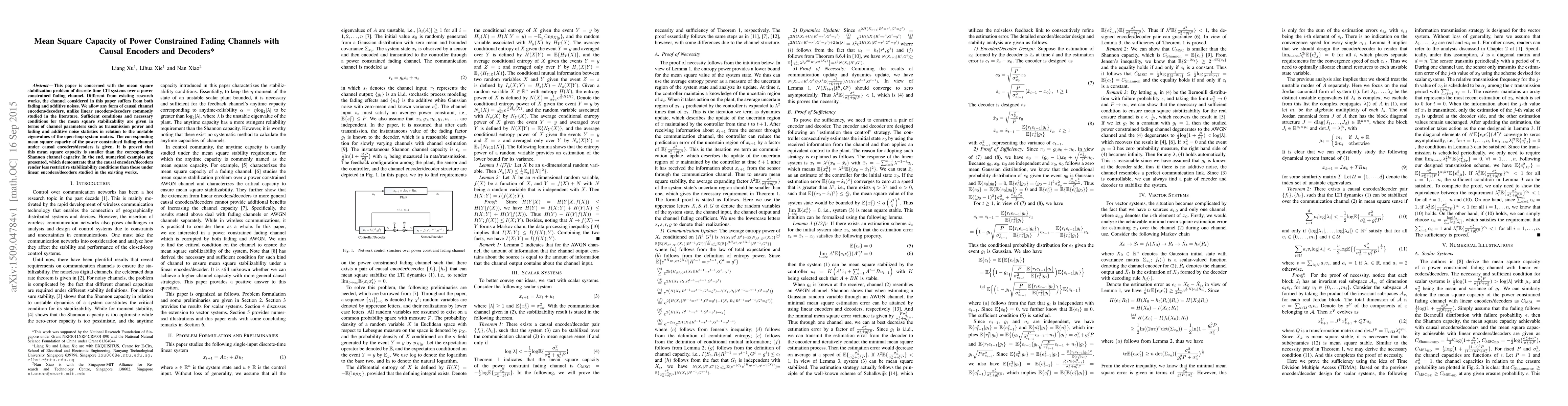 This paper explores the mean square stabilization of LTI systems over power constrained fading channels with additive noise, allowing for any causal encoders/decoders. It provides conditions for mean square stabilizability and derives a mean square capacity, proving it is less than the Shannon capacity, with numerical examples showing causal methods offer more flexibility.