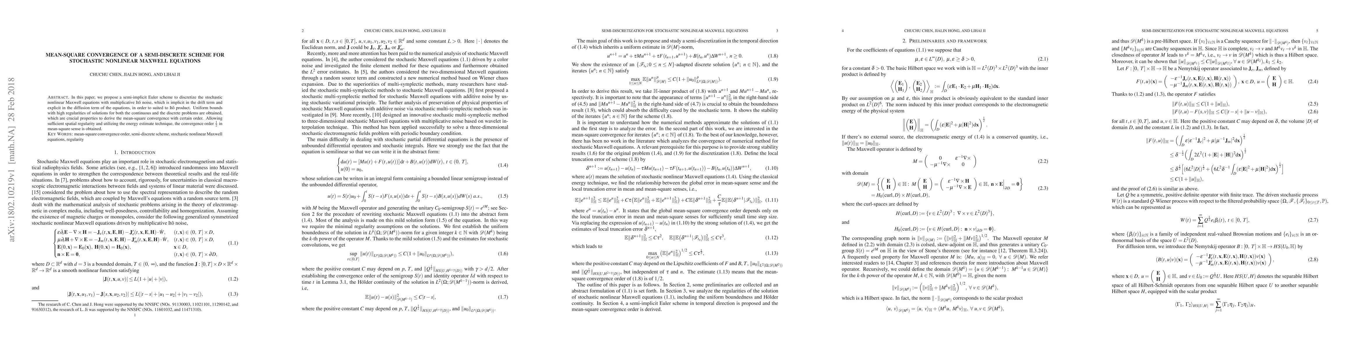 This paper proposes a semi-implicit Euler scheme for stochastic nonlinear Maxwell equations with multiplicative Ito noise, achieving mean-square convergence of order 1/2. Uniform bounds and high-regularity solutions for both continuous and discrete problems are established to support this convergence.