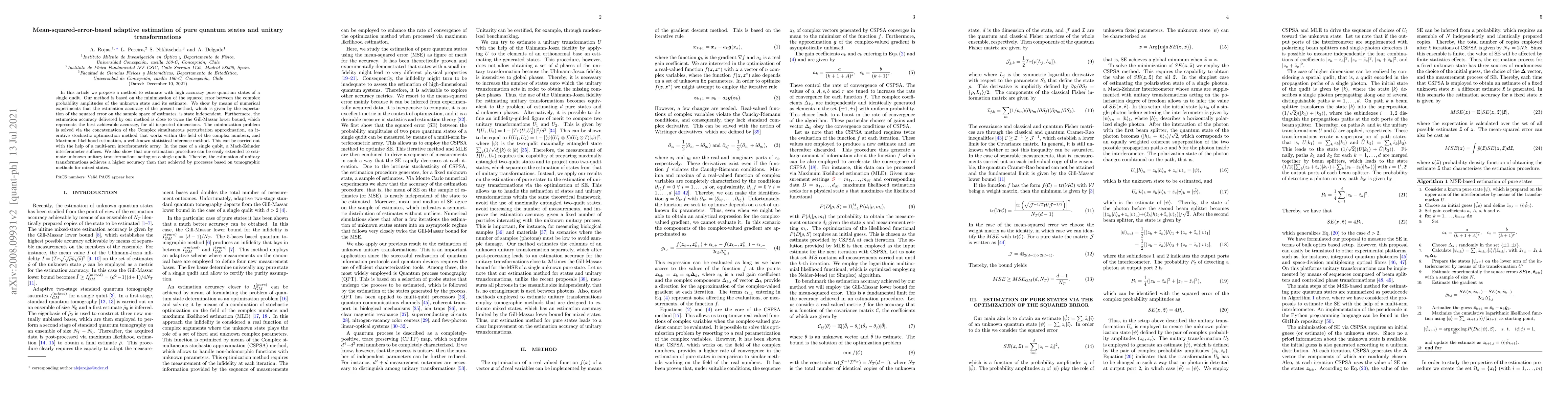In this article we propose a method to estimate with high accuracy pure quantum states of a single qudit. Our method is based on the minimization of the squared error between the complex probability amplitudes of the unknown state and its estimate. We show by means of numerical experiments that the estimation accuracy of the present method, which is given by the expectation of the squared error on the sample space of estimates, is state independent. Furthermore, the estimation accuracy delivered by our method is close to twice the Gill-Massar lower bound, which represents the best achievable accuracy, for all inspected dimensions. The minimization problem is solved via the concatenation of the Complex simultaneous perturbation approximation, an iterative stochastic optimization method that works within the field of the complex numbers, and Maximum likelihood estimation, a well-known statistical inference method. This can be carried out with the help of a multi-arm interferometric array. In the case of a single qubit, a Mach-Zehnder interferometer suffices. We also show that our estimation procedure can be easily extended to estimate unknown unitary transformations acting on a single qudit. Thereby, the estimation of unitary transformations achieves a higher accuracy than that achieved by processes based on tomographic methods for mixed states.