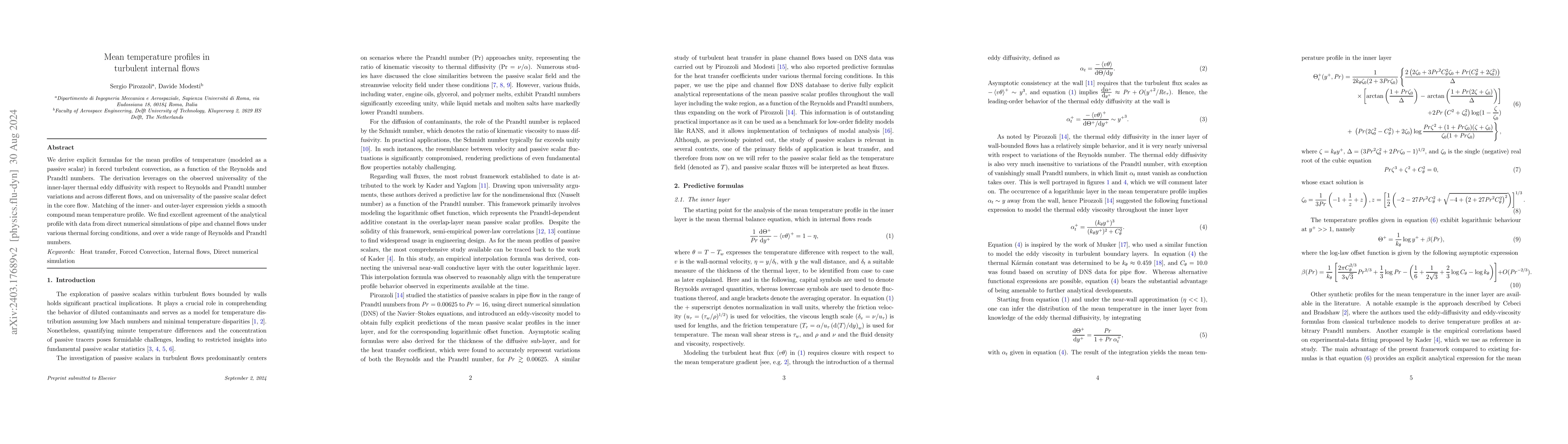 This research paper develops explicit formulas for mean temperature and concentration profiles in turbulent internal flows, utilizing the universality of thermal eddy diffusivity and passive scalar defect. The derived profiles align well with direct numerical simulation data across varying Reynolds and Prandtl numbers.