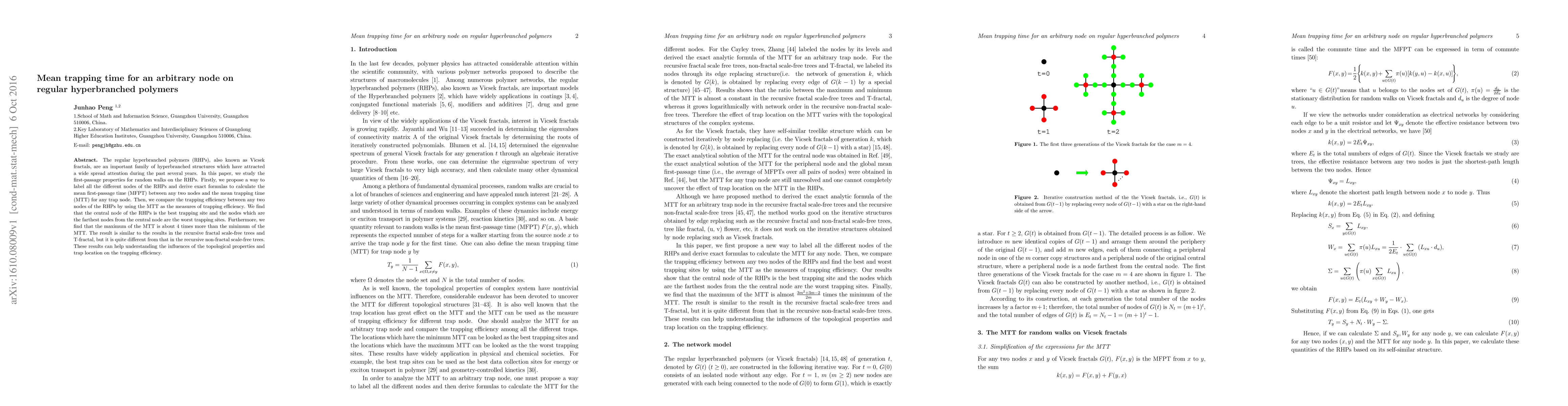 This paper investigates the mean trapping time (MTT) for nodes on regular hyperbranched polymers (RHPs), finding that the central node is the most efficient trap site, while the farthest nodes are the least efficient. The study reveals that the MTT varies significantly, with the maximum being about four times the minimum, providing insights into the impact of topology on trapping efficiency.