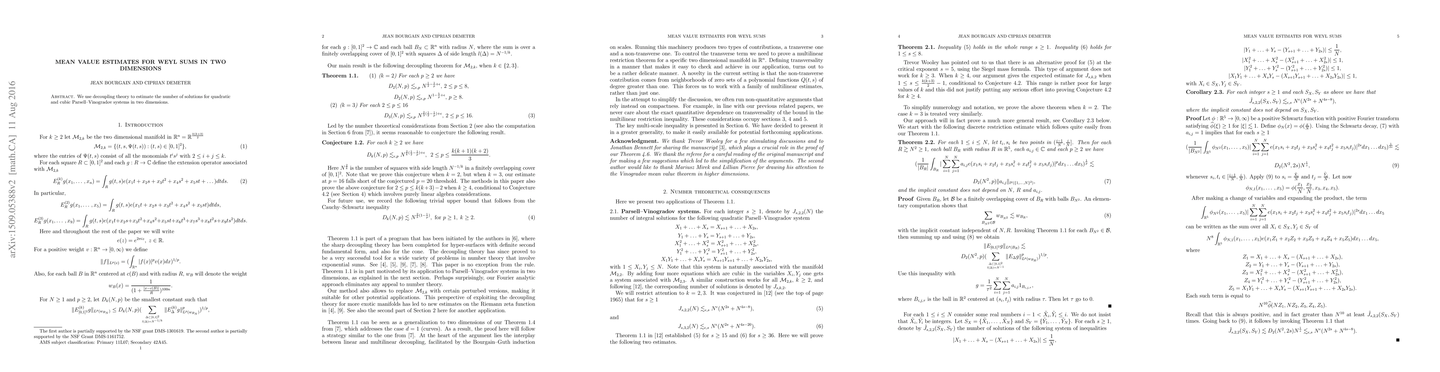 Researchers used decoupling theory to estimate solutions for quadratic and cubic systems in two dimensions, providing insights into the number of possible solutions.