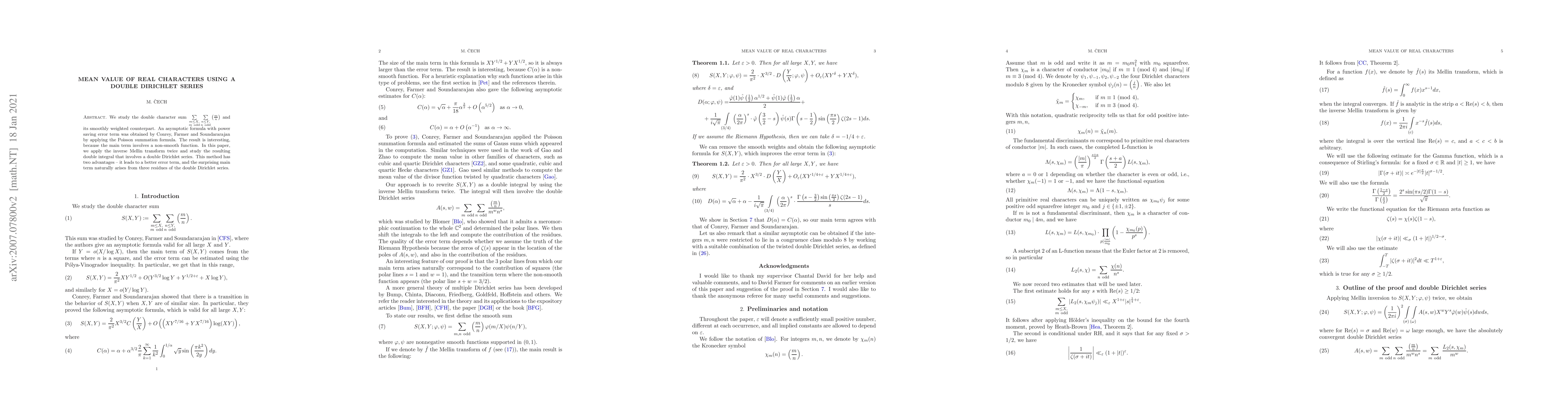 We study the double character sum $\sum\limits_{\substack{m\leq X,\\m\odd}}\sum\limits_{\substack{n\leq Y,\\n\odd}}\leg mn$ and its smoothly weighted counterpart. An asymptotic formula with power saving error term was obtained by Conrey, Farmer and Soundararajan by applying the Poisson summation formula. The result is interesting, because the main term involves a non-smooth function. In this paper, we apply the inverse Mellin transform twice and study the resulting double integral that involves a double Dirichlet series. This method has two advantages -- it leads to a better error term, and the surprising main term naturally arises from three residues of the double Dirichlet series.