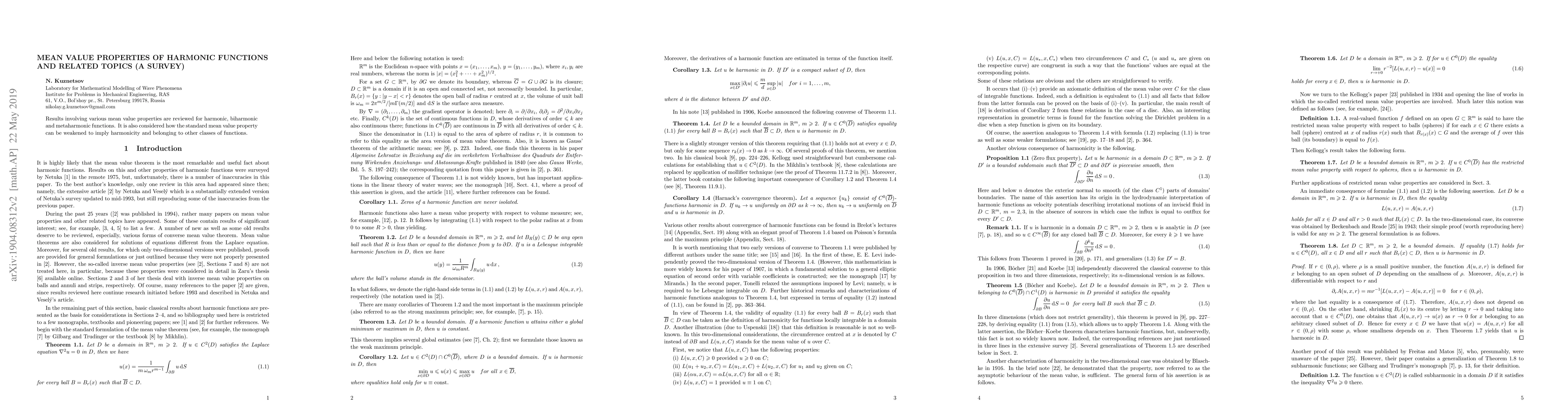 Summary: This paper surveys mean value properties of harmonic, biharmonic, and metaharmonic functions, exploring how weakened versions of the standard mean value property can imply harmonicity and membership in other function classes.