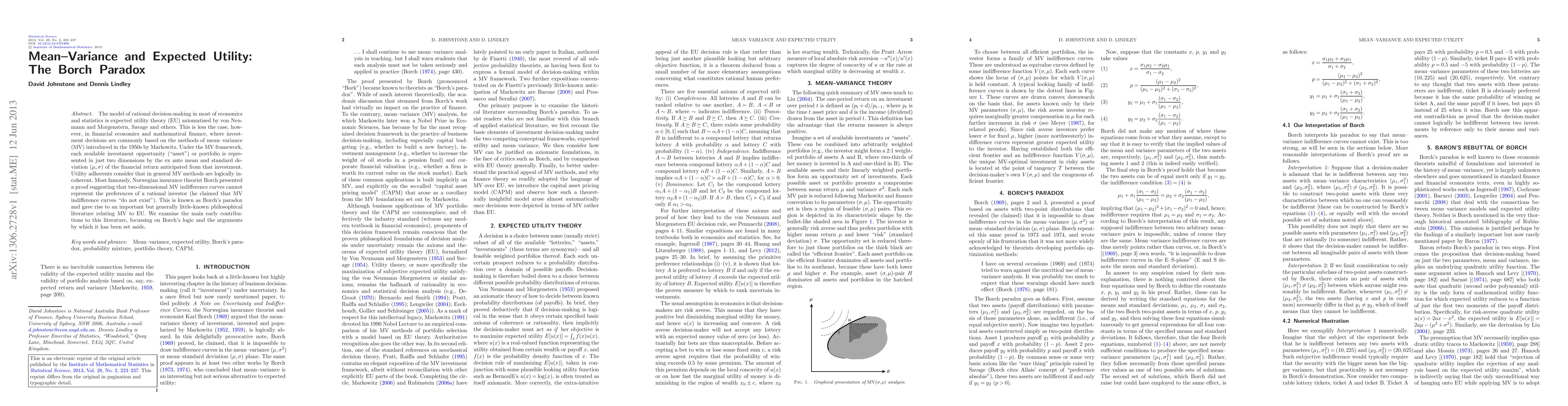 This paper examines Borch's paradox, which questions the logical coherence of mean-variance (MV) methods in finance, arguing that they cannot represent rational investor preferences. It focuses on early contributions to the literature and their implications for expected utility theory.