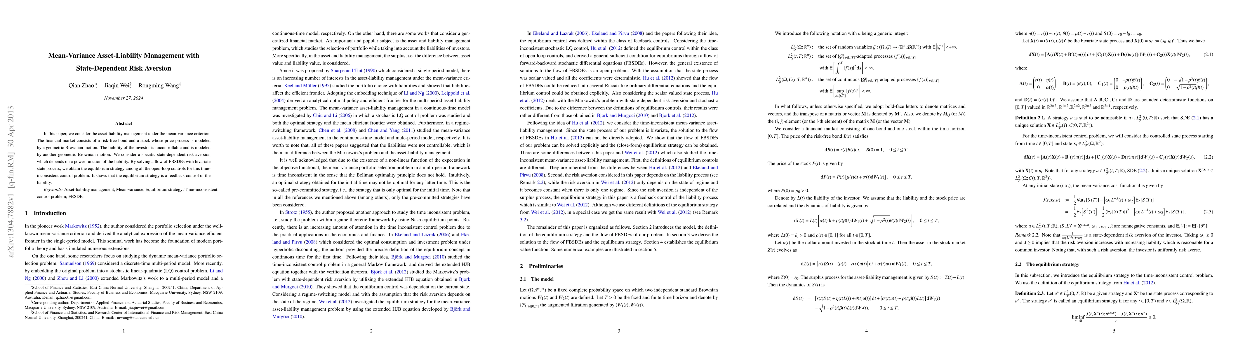 This paper studies asset-liability management under mean-variance criteria with state-dependent risk aversion tied to the liability's power function. The authors solve a flow of FBSDEs to derive an equilibrium strategy for managing the liability as a feedback control.