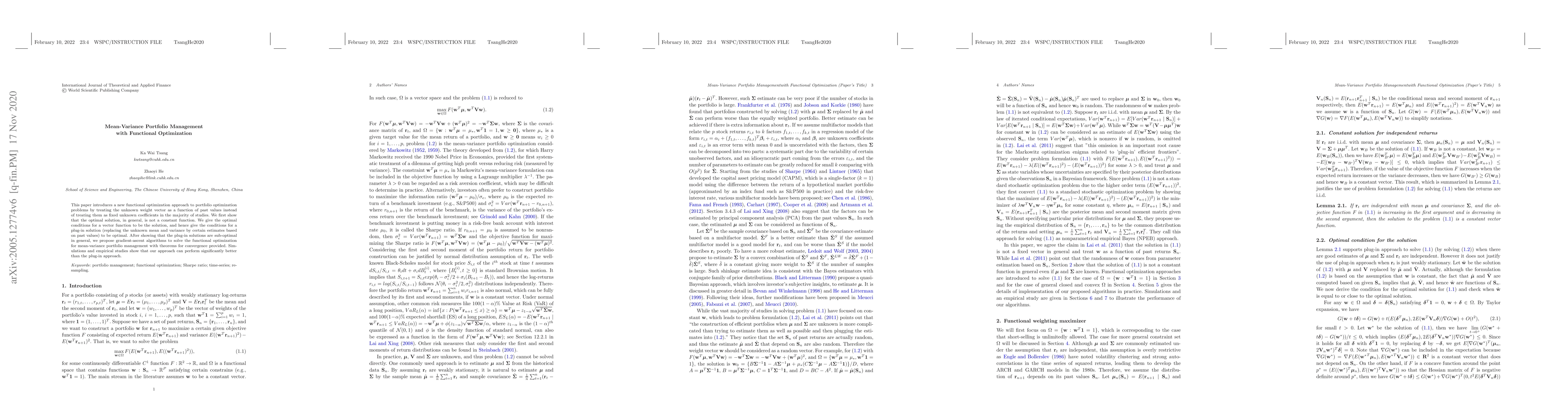 This paper introduces a new functional optimization approach to portfolio optimization problems by treating the unknown weight vector as a function of past values instead of treating them as fixed unknown coefficients in the majority of studies. We first show that the optimal solution, in general, is not a constant function. We give the optimal conditions for a vector function to be the solution, and hence give the conditions for a plug-in solution (replacing the unknown mean and variance by certain estimates based on past values) to be optimal. After showing that the plug-in solutions are sub-optimal in general, we propose gradient-ascent algorithms to solve the functional optimization for mean-variance portfolio management with theorems for convergence provided. Simulations and empirical studies show that our approach can perform significantly better than the plug-in approach.