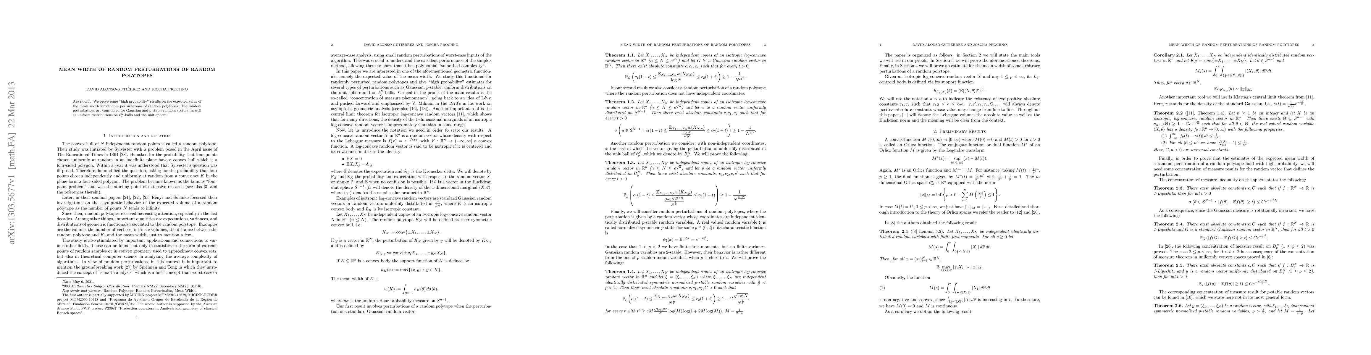 This paper establishes "high probability" results on the expected mean width for random perturbations of random polytopes, considering Gaussian, $p$-stable random vectors, and uniform distributions on $\ell_p^N$-balls and the unit sphere. The findings provide insights into the geometric properties of these perturbed polytopes.
