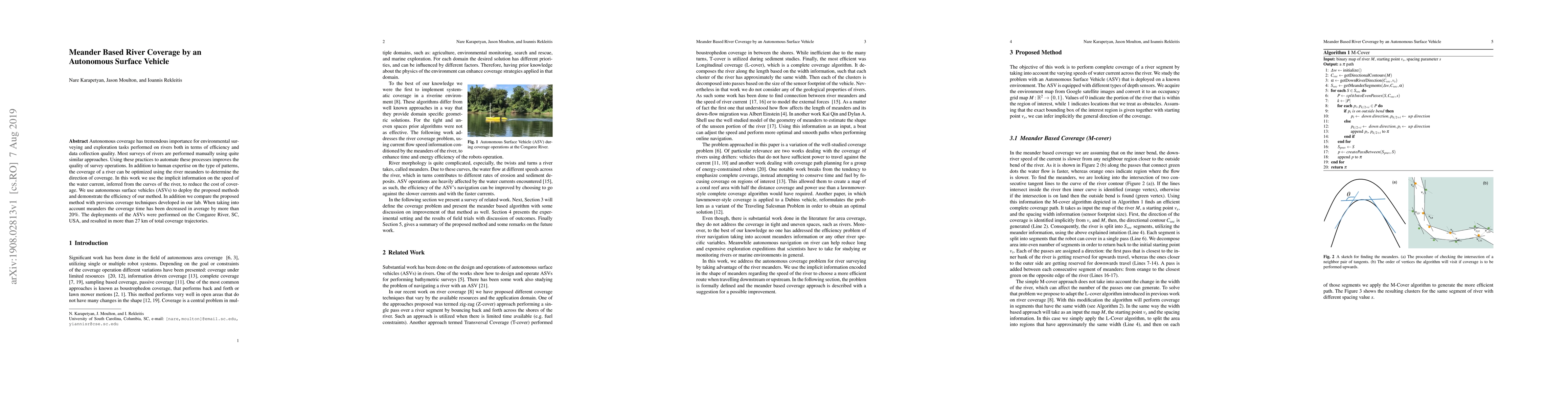 This research proposes an autonomous surface vehicle (ASV) method for river coverage that leverages river meanders to optimize survey paths, reducing coverage time by over 20% compared to previous techniques. Field tests on the Congaree River in South Carolina demonstrated the efficiency of the method, achieving more than 27 km of coverage.