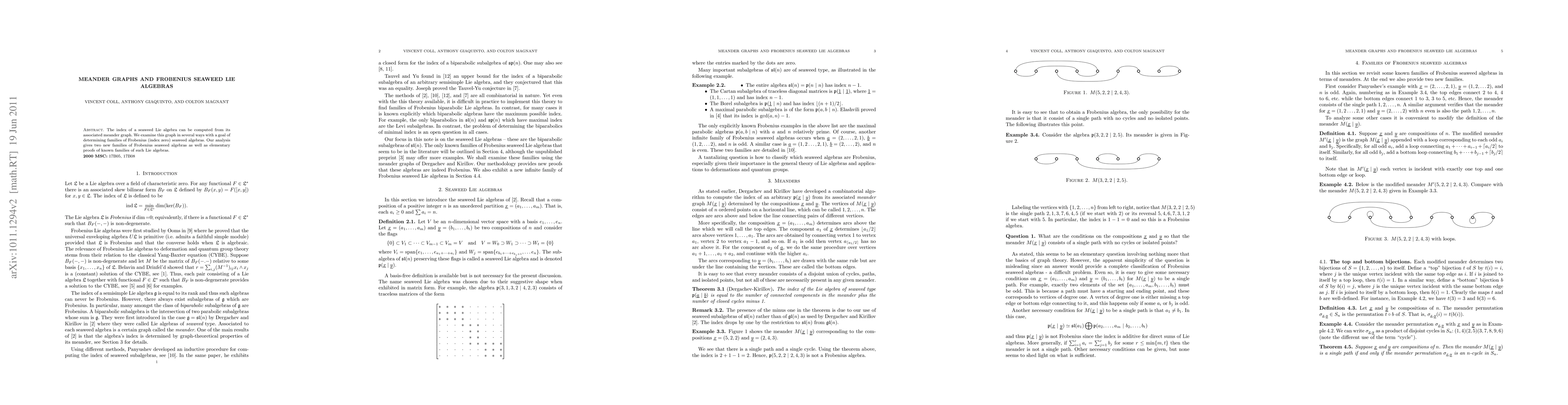 This research investigates the connection between meander graphs and Frobenius seaweed Lie algebras, revealing two new families of Frobenius algebras and providing simpler proofs for known families.