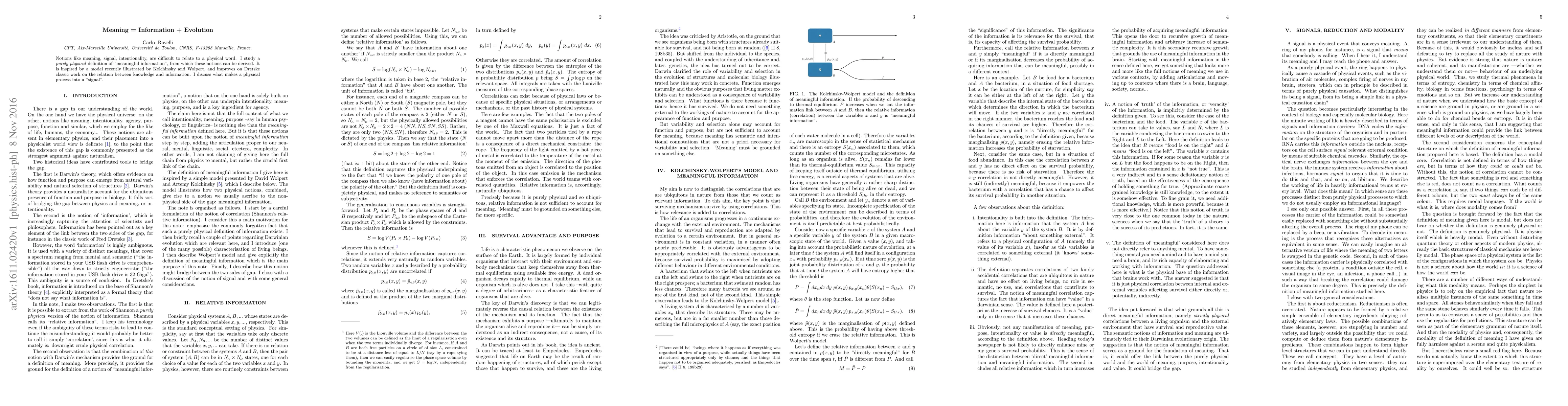 Notions like meaning, signal, intentionality, are difficult to relate to a physical word. I study a purely physical definition of "meaningful information", from which these notions can be derived. It is inspired by a model recently illustrated by Kolchinsky and Wolpert, and improves on Dretske classic work on the relation between knowledge and information. I discuss what makes a physical process into a "signal".