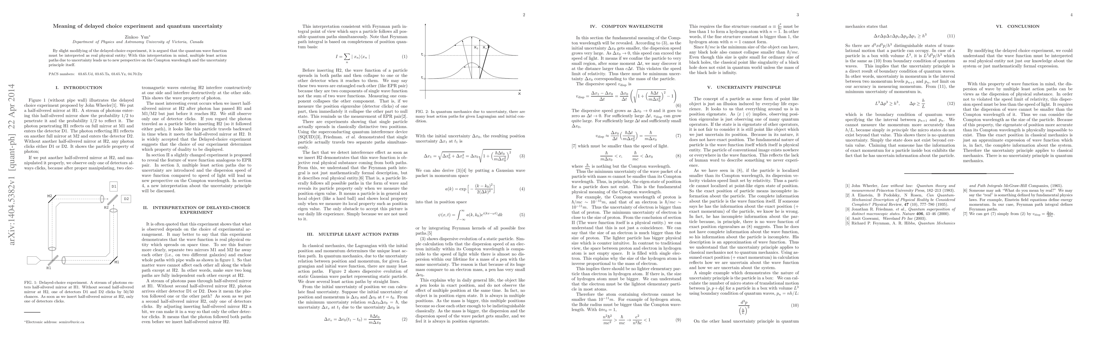 By slight modifying of the delayed-choice experiment, it is argued that the quantum wave function must be interpreted as real physical entity; With this interpretation in mind, multiple least action paths due to uncertainty leads us to new perspective on the Compton wavelength and the uncertainty principle itself.
