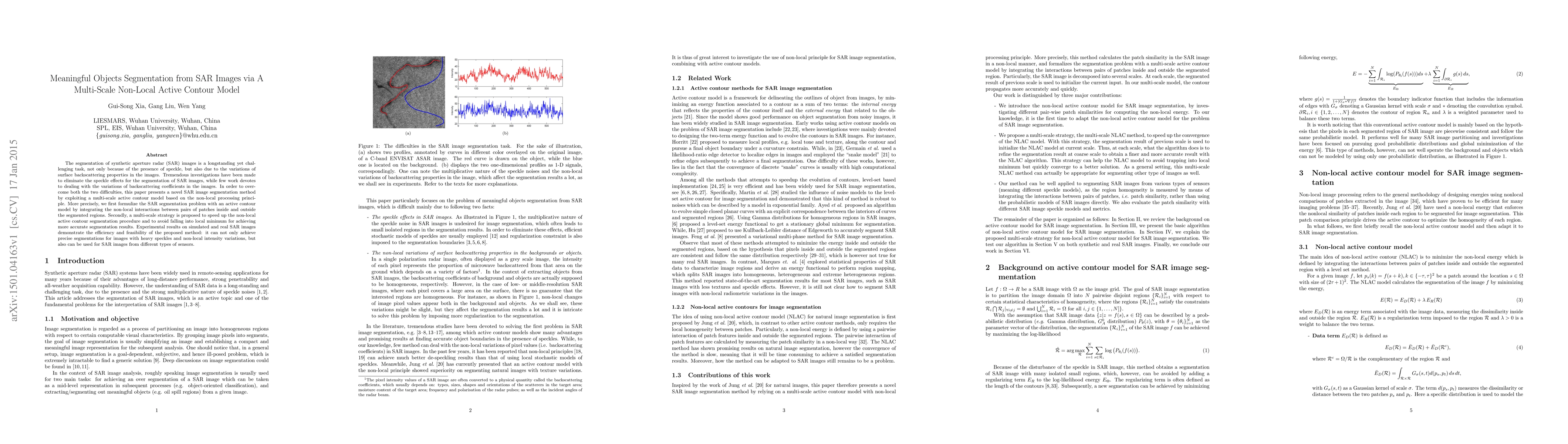 This paper introduces a novel segmentation method for synthetic aperture radar (SAR) images using a multi-scale non-local active contour model to address both speckle noise and variations in surface backscattering properties. The proposed method integrates non-local interactions and a multi-scale strategy to achieve precise segmentations, validated through experiments on both simulated and real SAR images.