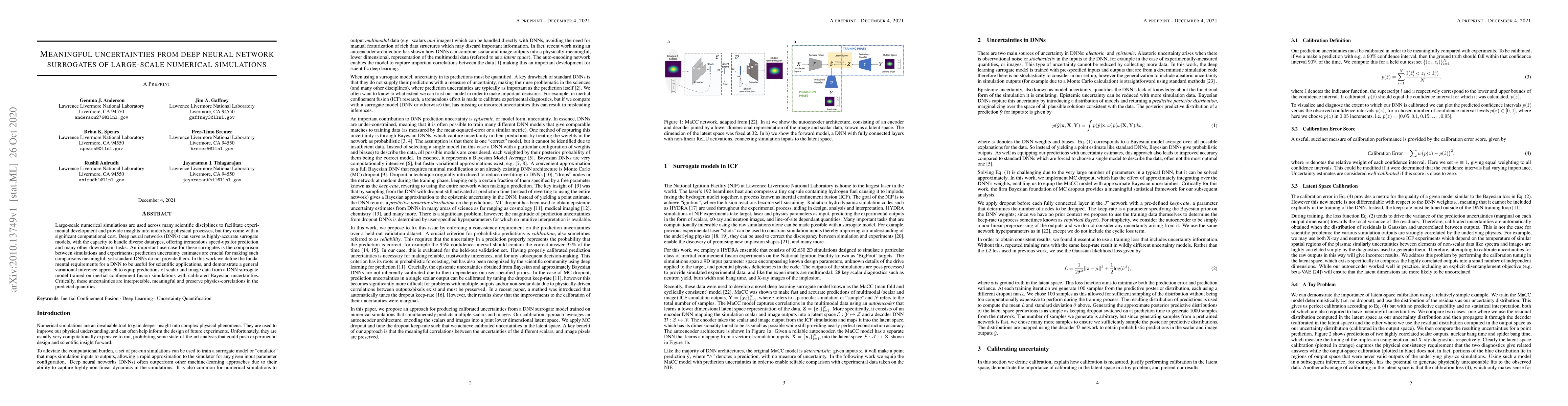 This research paper introduces a method to provide meaningful uncertainty estimates for predictions made by deep neural network surrogates of large-scale numerical simulations, enabling more accurate comparisons between simulations and experiments.