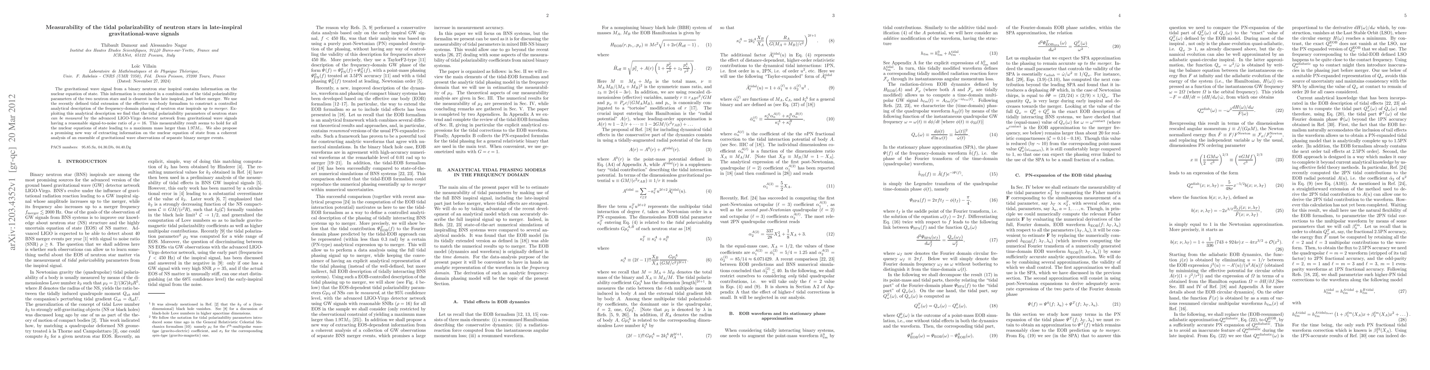 The gravitational wave signal from a binary neutron star inspiral contains information on the nuclear equation of state. This information is contained in a combination of the tidal polarizability parameters of the two neutron stars and is clearest in the late inspiral, just before merger. We use the recently defined tidal extension of the effective one-body formalism to construct a controlled analytical description of the frequency-domain phasing of neutron star inspirals up to merger. Exploiting this analytical description we find that the tidal polarizability parameters of neutron stars can be measured by the advanced LIGO-Virgo detector network from gravitational wave signals having a reasonable signal-to-noise ratio of $\rho=16$. This measurability result seems to hold for all the nuclear equations of state leading to a maximum mass larger than $1.97M_\odot$. We also propose a promising new way of extracting information on the nuclear equation of state from a coherent analysis of an ensemble of gravitational wave observations of separate binary merger events.