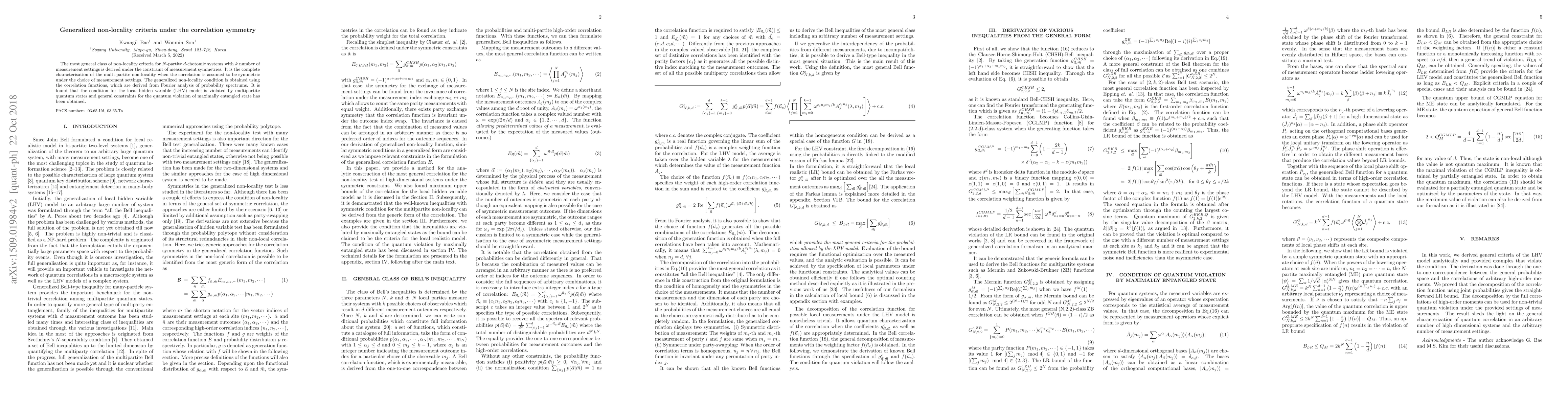 The most general class of non-locality criteria for N-partite d-chotomic systems with k number of measurement settings is derived under the constraint of measurement symmetries. It is the complete characterisation of the multi-partite non-locality when the correlation is assumed to be symmetric under the choice of measurement settings. The generalized non-locality condition is obtained using the correlation functions, which are derived from Fourier analysis of probability spectrums. It is found that the condition for the local hidden variable (LHV) model is violated by multipartite quantum states and general constraints for the quantum violation of maximally entangled state has been obtained.