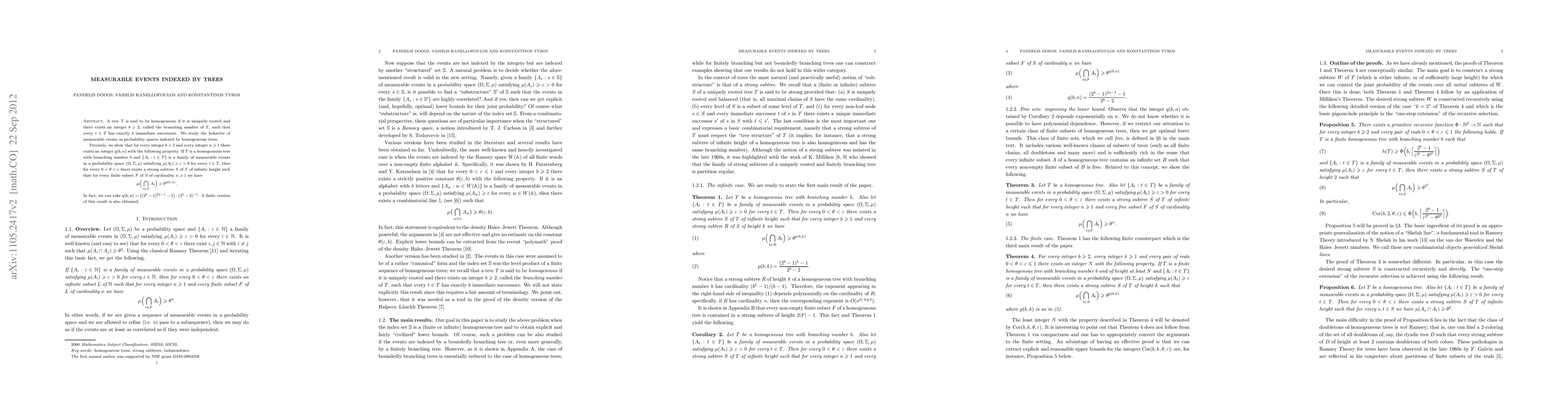 This paper investigates measurable events in probability spaces indexed by homogeneous trees, demonstrating that for any branching number $b\geq 2$, a specific integer $q(b,n)$ exists such that if events $A_t$ satisfy certain conditions, then intersections of these events over sufficiently large subtrees maintain a lower bound on their probability.