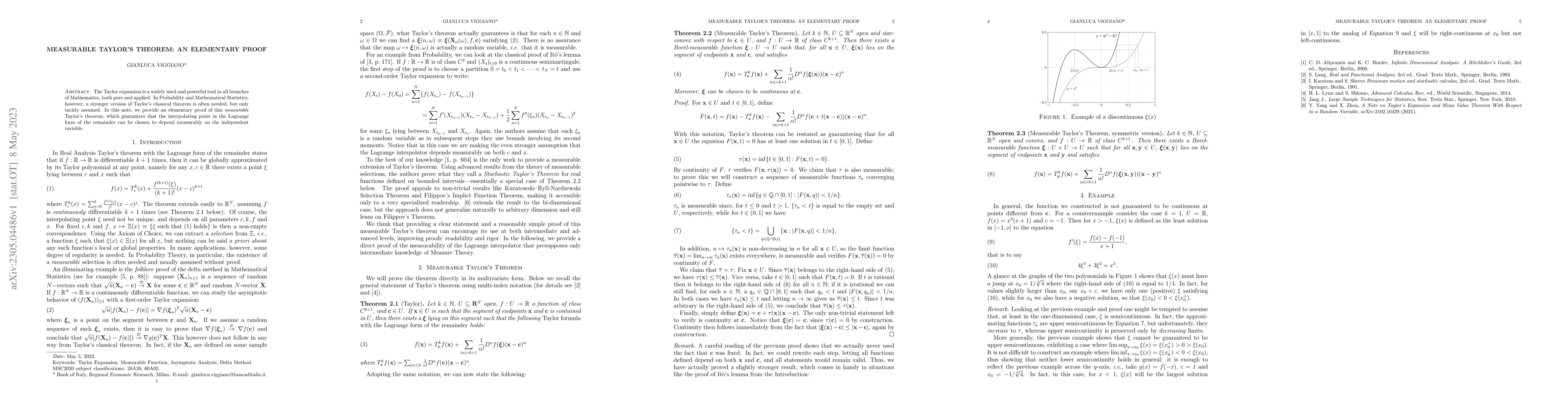 The Taylor expansion is a widely used and powerful tool in all branches of Mathematics, both pure and applied. In Probability and Mathematical Statistics, however, a stronger version of Taylor's classical theorem is often needed, but only tacitly assumed. In this note, we provide an elementary proof of this measurable Taylor's theorem, which guarantees that the interpolating point in the Lagrange form of the remainder can be chosen to depend measurably on the independent variable.
