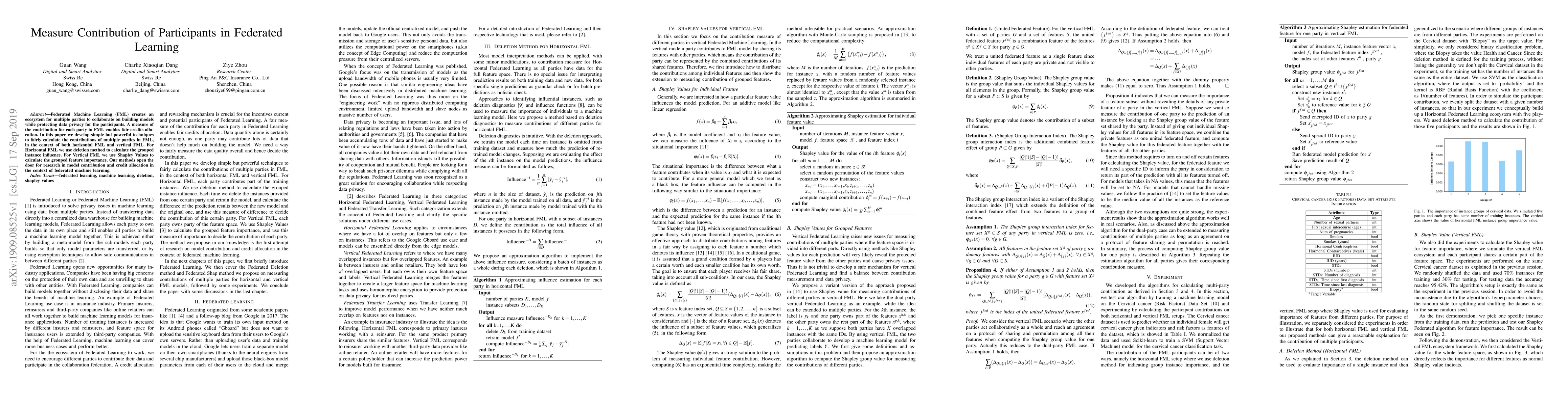 This paper develops methods to fairly measure the contributions of participants in Federated Machine Learning (FML) for both horizontal and vertical settings. It uses the deletion method for horizontal FML and Shapley Values for vertical FML to calculate instance and feature importance, respectively, facilitating fair credit allocation.
