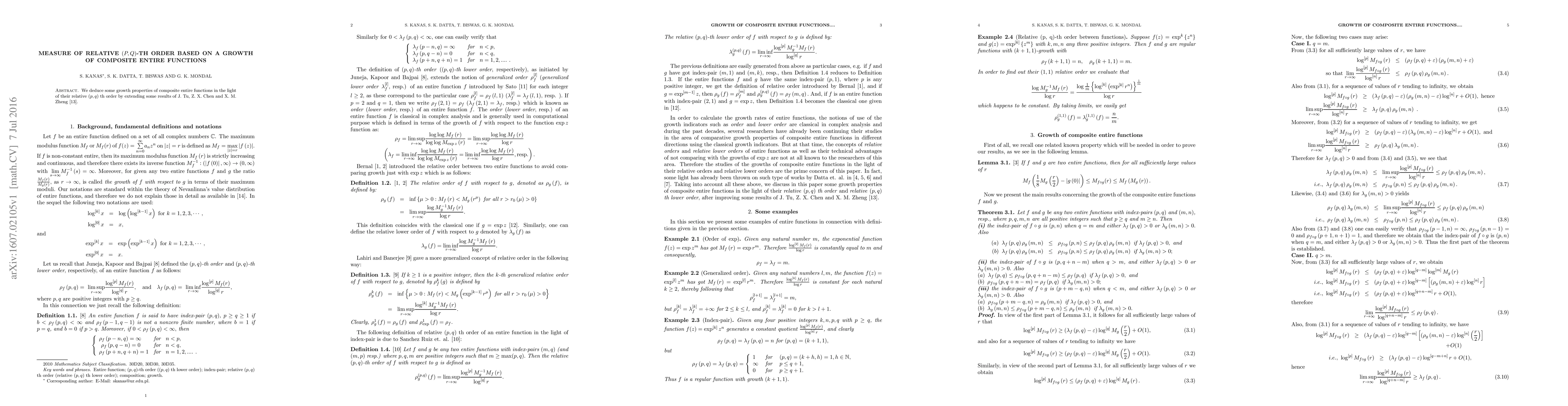 Summary: This paper extends previous results on the growth properties of composite entire functions, focusing on their relative $(p,q)$-th order. It provides new insights into the growth behavior of these functions based on the composite nature and relative order.