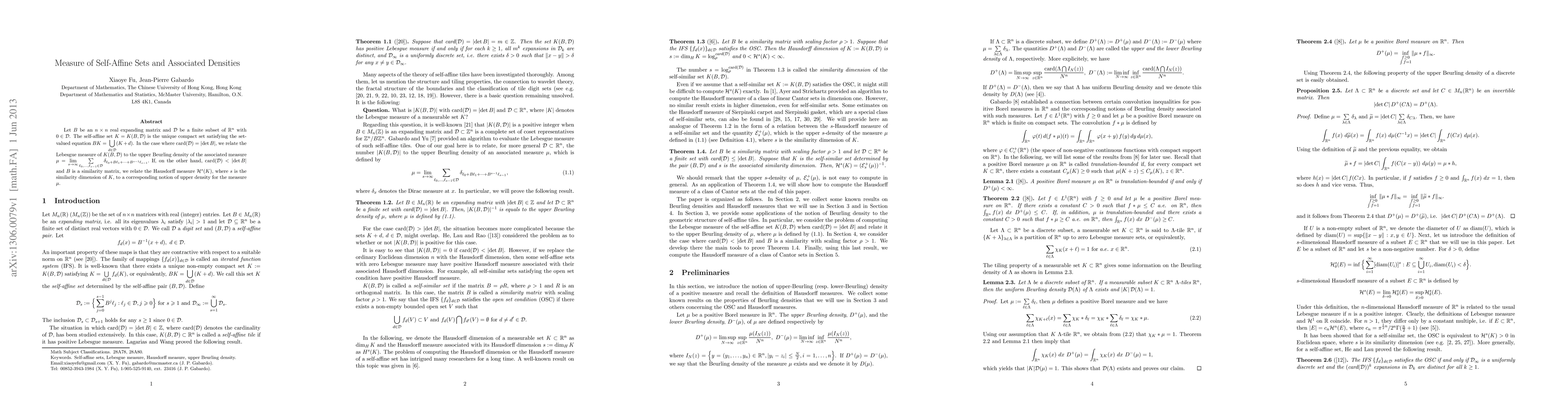 Researchers developed a method to measure the size of self-affine sets generated from expanding matrices and finite subsets in n-dimensional space, relating it to upper Beurling density for expanding matrices or Hausdorff measure for similarity matrices.