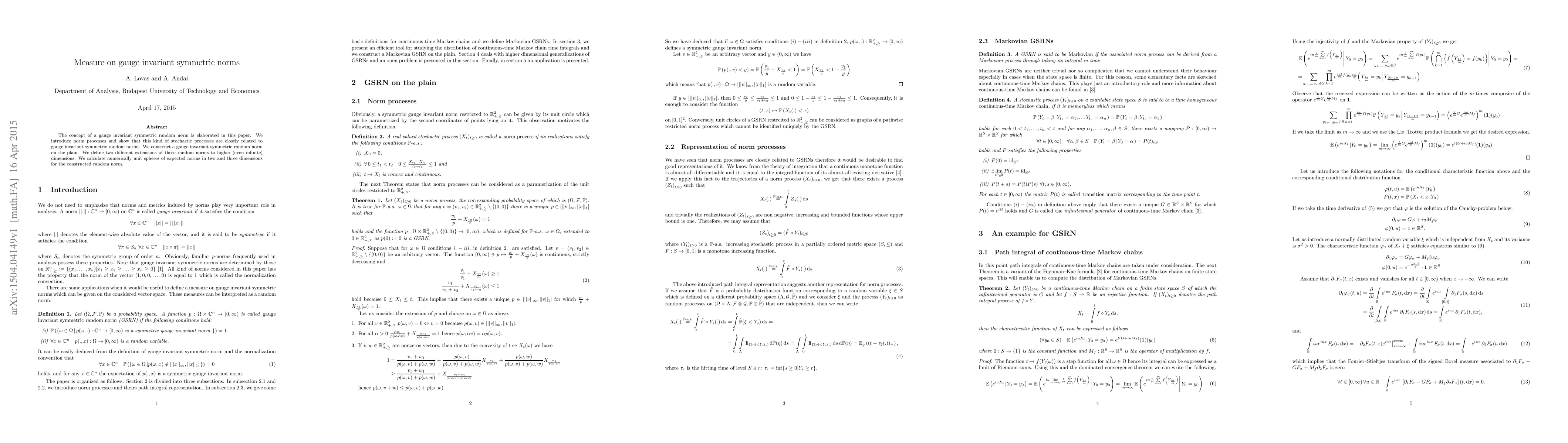 This paper introduces gauge invariant symmetric random norms and norm processes, constructing such a norm on a plane and extending it to higher dimensions. Numerical calculations are performed to determine unit spheres of the expected norms in two and three dimensions.