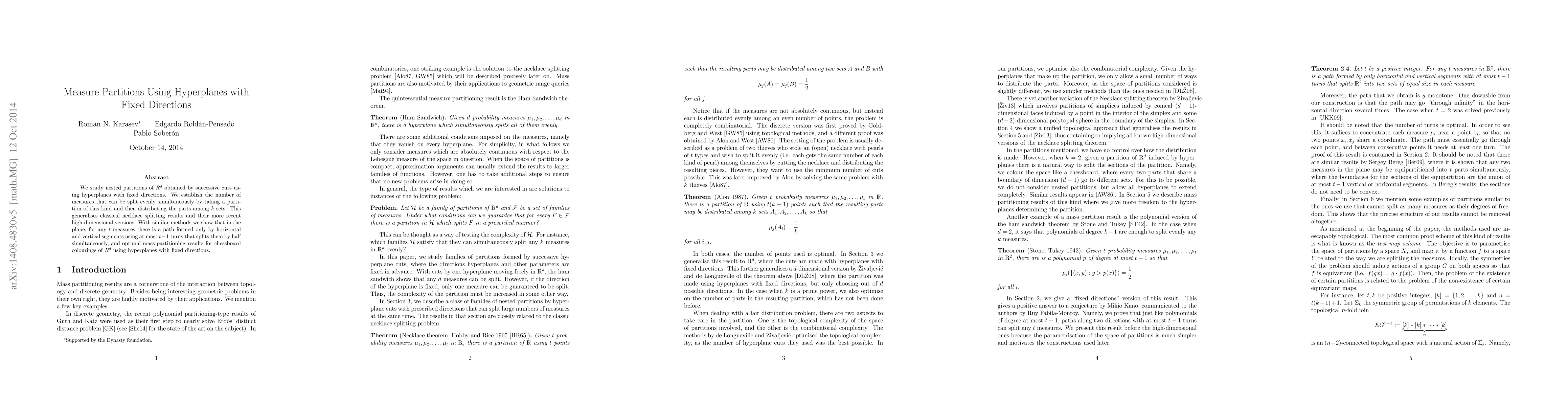 We study nested partitions of $R^d$ obtained by successive cuts using hyperplanes with fixed directions. We establish the number of measures that can be split evenly simultaneously by taking a partition of this kind and then distributing the parts among $k$ sets. This generalises classical necklace splitting results and their more recent high-dimensional versions. With similar methods we show that in the plane, for any $t$ measures there is a path formed only by horizontal and vertical segments using at most $t-1$ turns that splits them by half simultaneously, and optimal mass-partitioning results for chessboard-colourings of $R^d$ using hyperplanes with fixed directions.