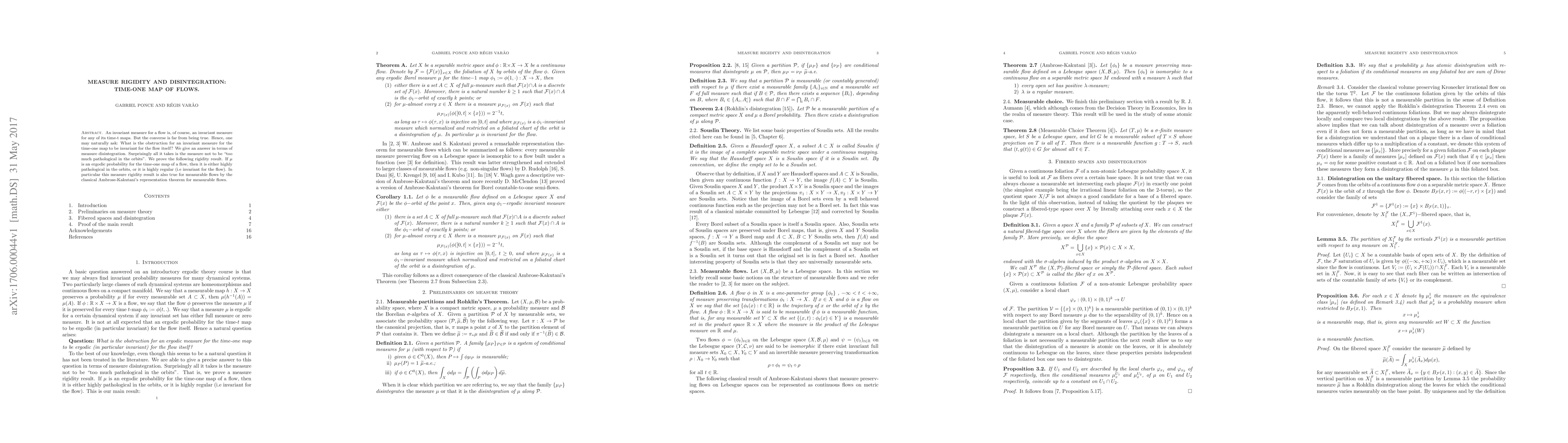 An invariant measure for a flow is, of course, an invariant measure for any of its time-t maps. But the converse is far from being true. Hence, one may naturally ask: What is the obstruction for an invariant measure for the time-one map to be invariant for the flow itself? We give an answer in terms of measure disintegration. Surprisingly all it takes is the measure not to be "too much pathological in the orbits". We prove the following rigidity result. If $\mu$ is an ergodic probability for the time-one map of a flow, then it is either highly pathological in the orbits, or it is highly regular (i.e invariant for the flow). In particular this measure rigidity result is also true for measurable flows by the classical Ambrose-Kakutani's representation theorem for measurable flows.