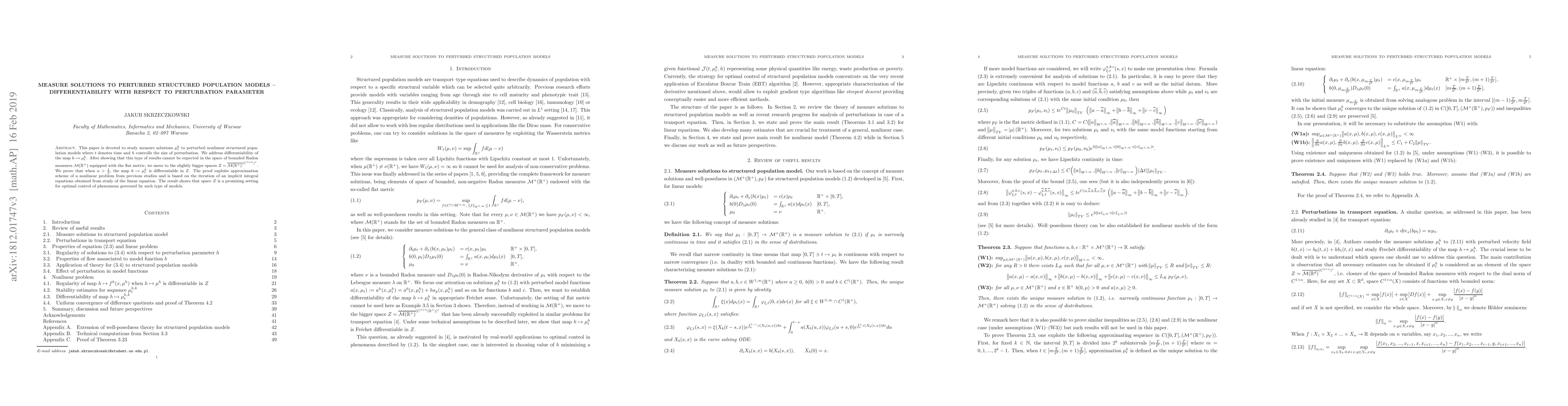 The paper presents a detailed analysis of measure solutions' differentiability with respect to perturbation parameters in structured population models, introducing a suitable function space Z and proving differentiability under specific conditions.
