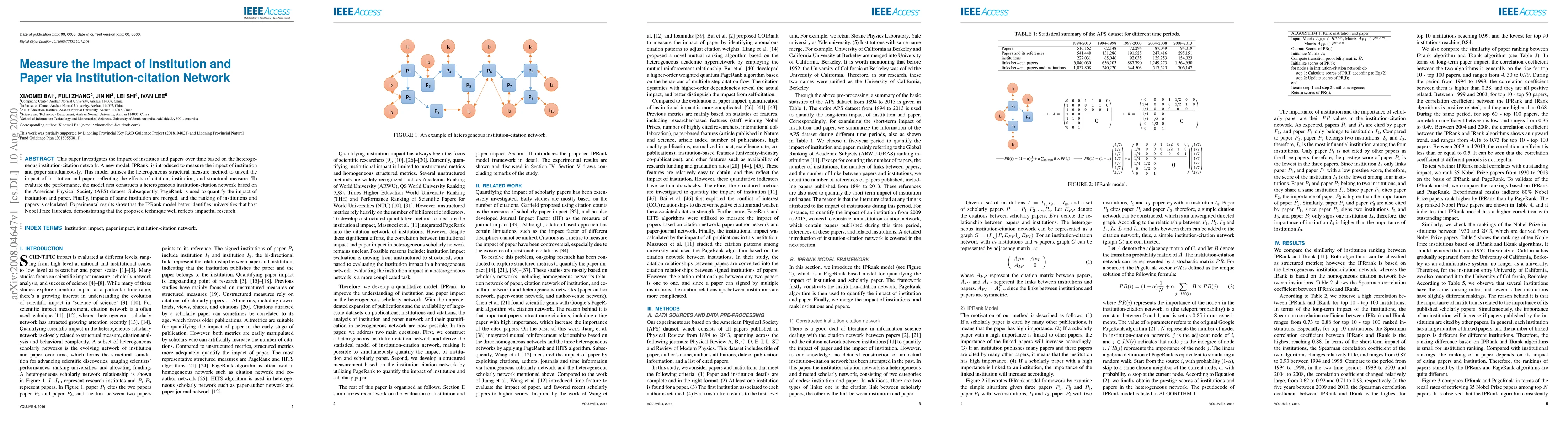 This paper investigates the impact of institutes and papers over time based on the heterogeneous institution-citation network. A new model, IPRank, is introduced to measure the impact of institution and paper simultaneously. This model utilises the heterogeneous structural measure method to unveil the impact of institution and paper, reflecting the effects of citation, institution, and structural measure. To evaluate the performance, the model first constructs a heterogeneous institution-citation network based on the American Physical Society (APS) dataset. Subsequently, PageRank is used to quantify the impact of institution and paper. Finally, impacts of same institution are merged, and the ranking of institutions and papers is calculated. Experimental results show that the IPRank model better identifies universities that host Nobel Prize laureates, demonstrating that the proposed technique well reflects impactful research.