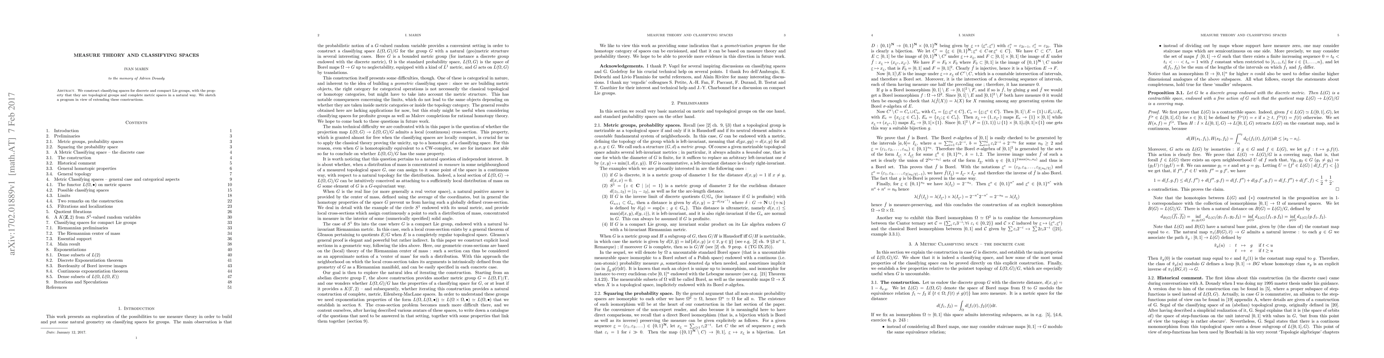 Summary: This paper introduces classifying spaces for discrete and compact Lie groups that are simultaneously topological groups and complete metric spaces. It outlines a potential program for future extensions of these constructions.