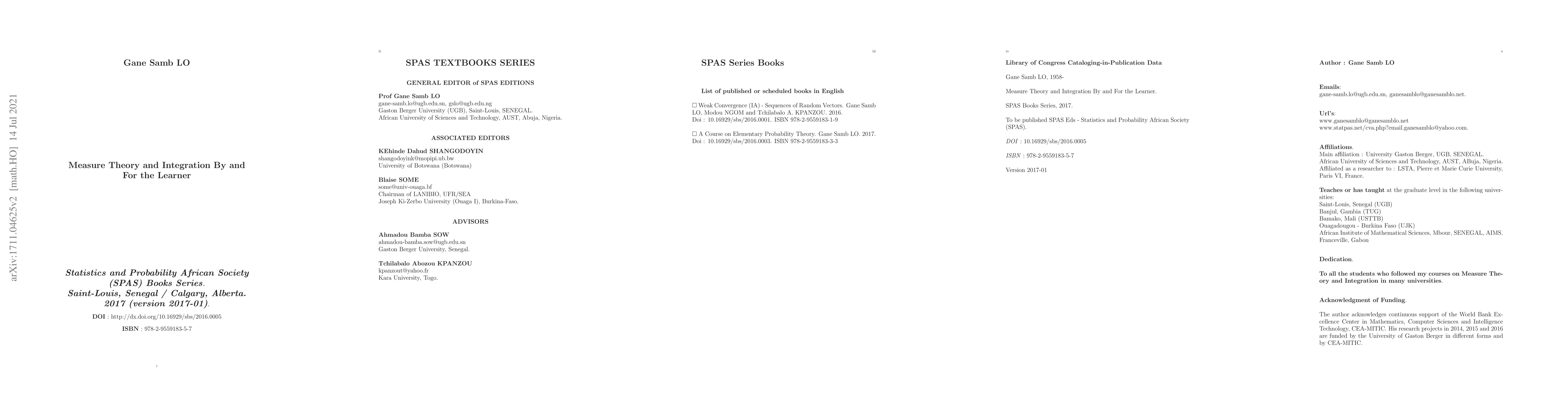 Measure Theory and Integration is exposed with the clear aim to help beginning learners to perfectly master its essence. In opposition of a delivery of the contents in an academic and vertical course, the knowledge is broken into exercises which are left to the learners for solutions. Hints are present at any corner to help readers to achieve the solutions. In that way, the knowledge is constructed by the readers by summarizing the results of one or a group of exercises. Each chapter is organized into Summary documents which contain the knowledge, Discovery documents which give the learner the opportunity to extract the knowledge himself through exercises and into Solution Documents which offer detailed answers for the exercises. Exceptionally, a few number of results (A key lemma related the justification of definition of the integral of a non-negative function, the Caratheodory's theorem and the Lebesgue-Stieljes measure on $\mathbb{R}^d$) are presented in appendix documents and given for reading in small groups. The full theory is presented in the described way. We highly expect that any student who goes through the materials, alone or in a small group or under the supervision of an assistant will gain a very solid knowledge in the subject and by the way ensure a sound foundation for studying disciplines such as Probability Theory, Statistics, Functional Analysis, etc. The materials have been successfully used as such in normal real analysis classes several times.